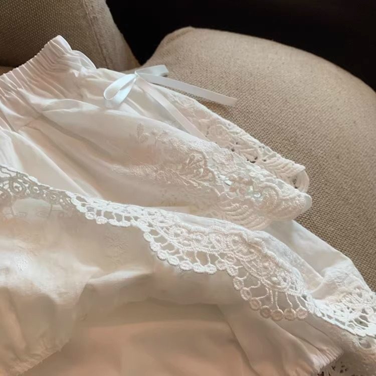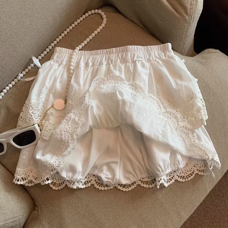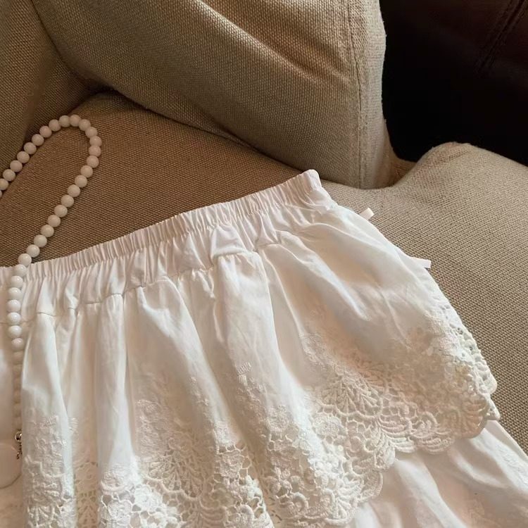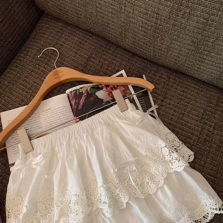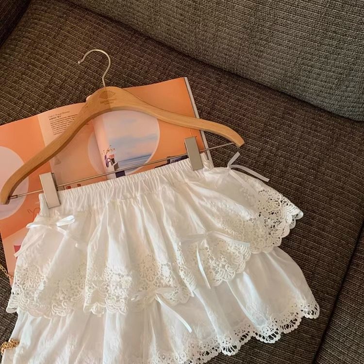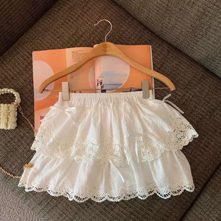 여성을위한 흰색 레이스 스플 라이스 스커트 2025 여름 새로운 한국 달콤한 스타일 활 자수 케이크 스커트