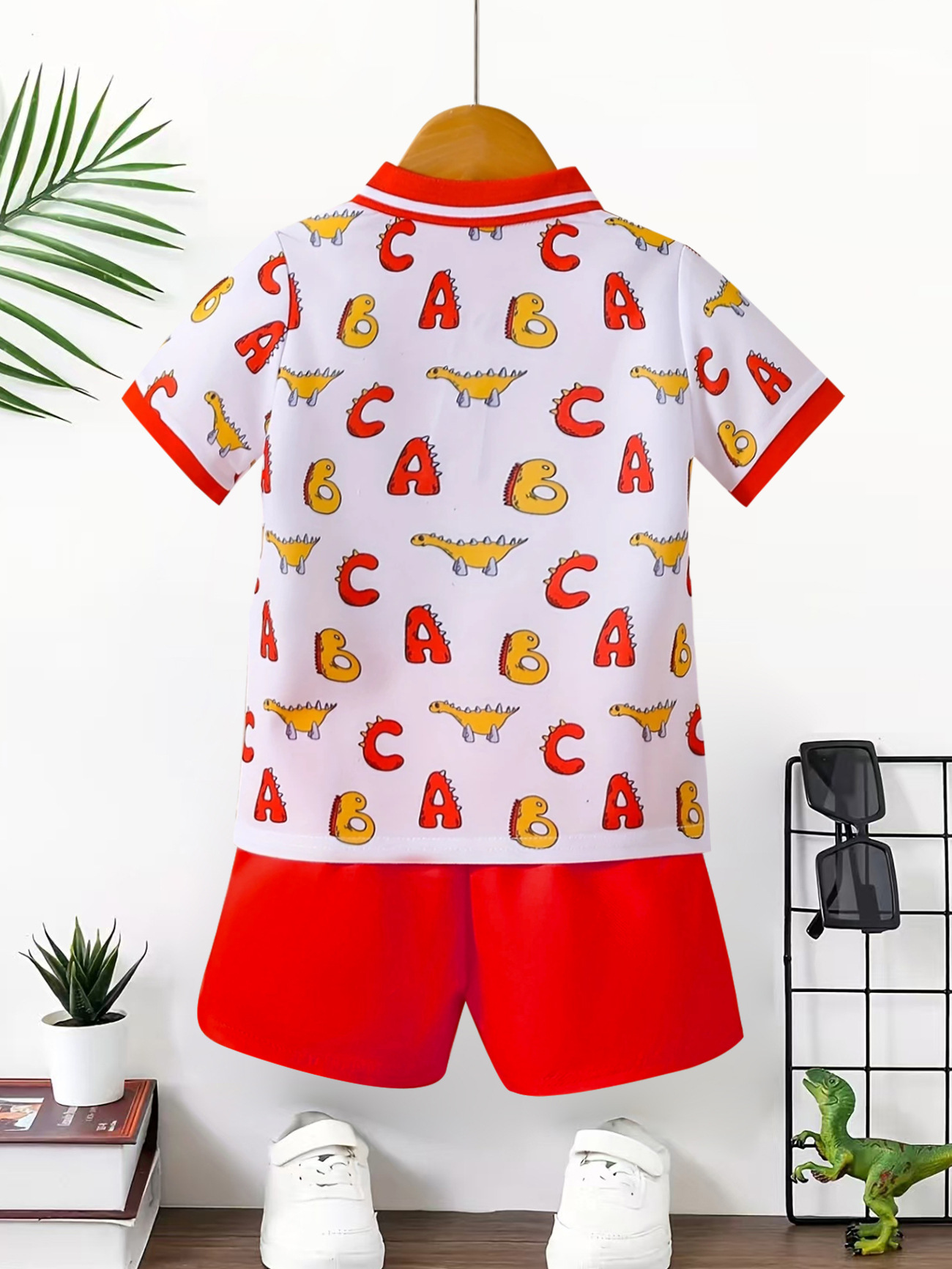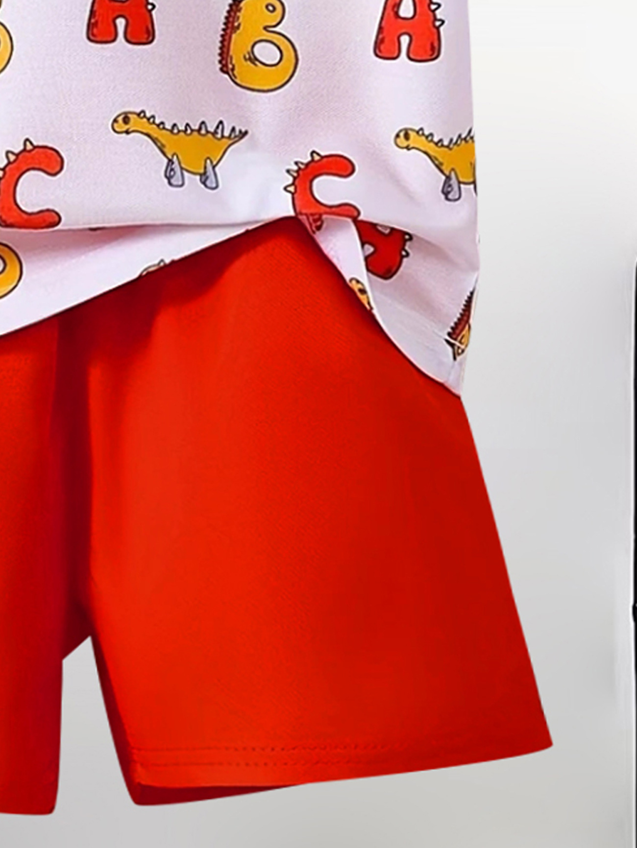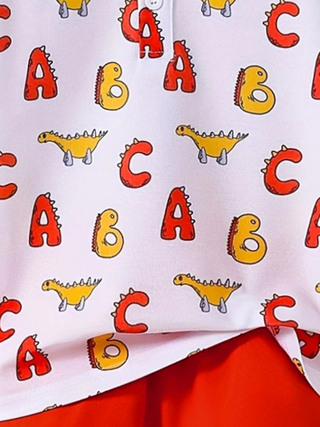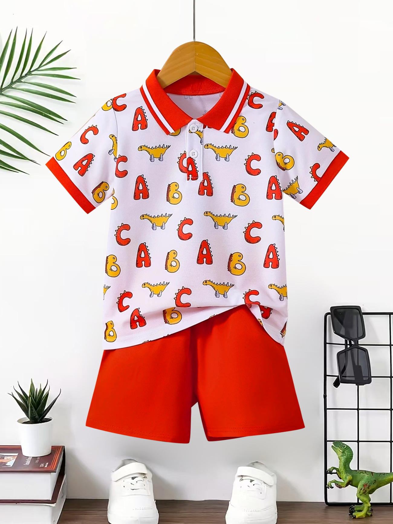 남아용 투피스 캐주얼 슈트, 스포츠 라펠 셔츠, 레터 프린트, 활용도 높은 반팔 티셔츠와 반바지, 편안함스토어 가기
