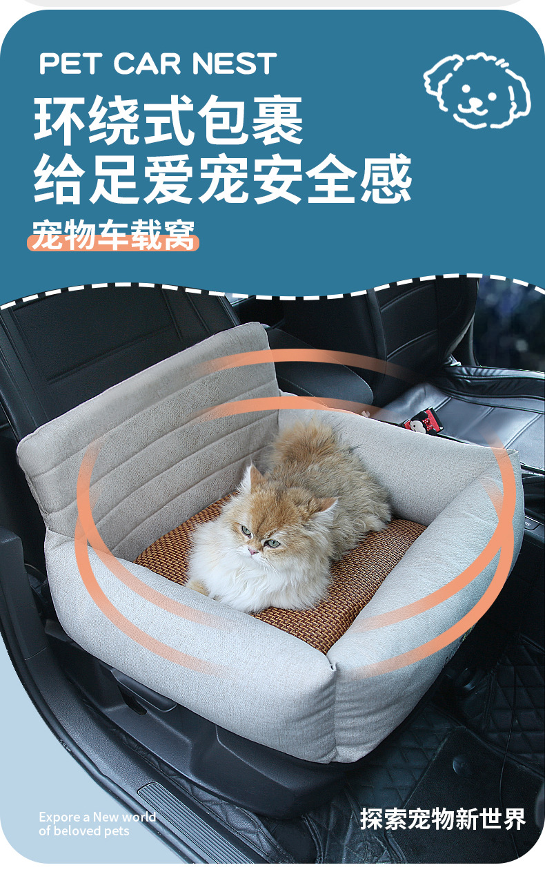 애완 동물 자동차 사육장 이동식 및 세척 가능한 자동차 외출 가방 작은 개 개 고양이 안전 좌석 자동차 패드 유물