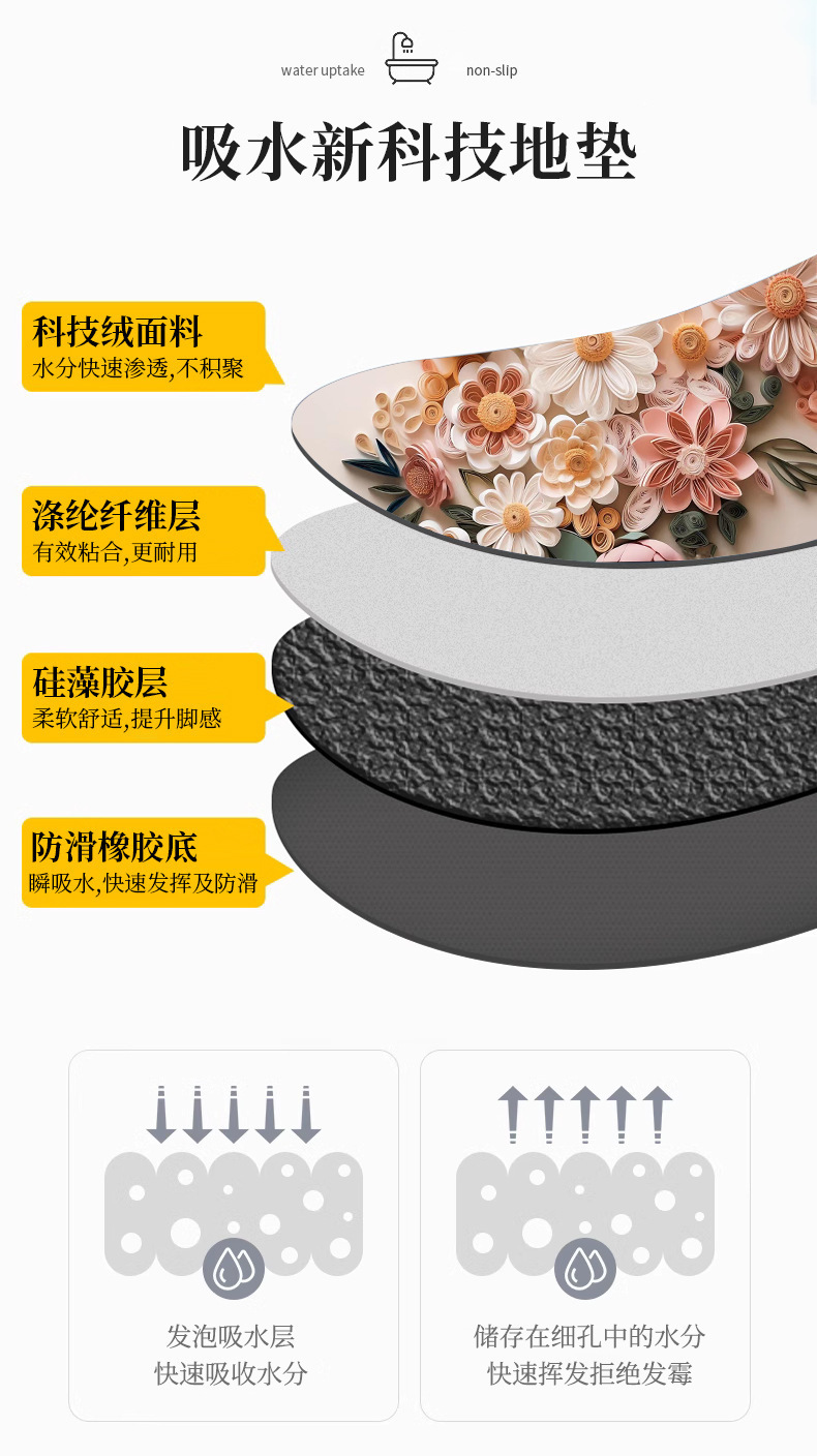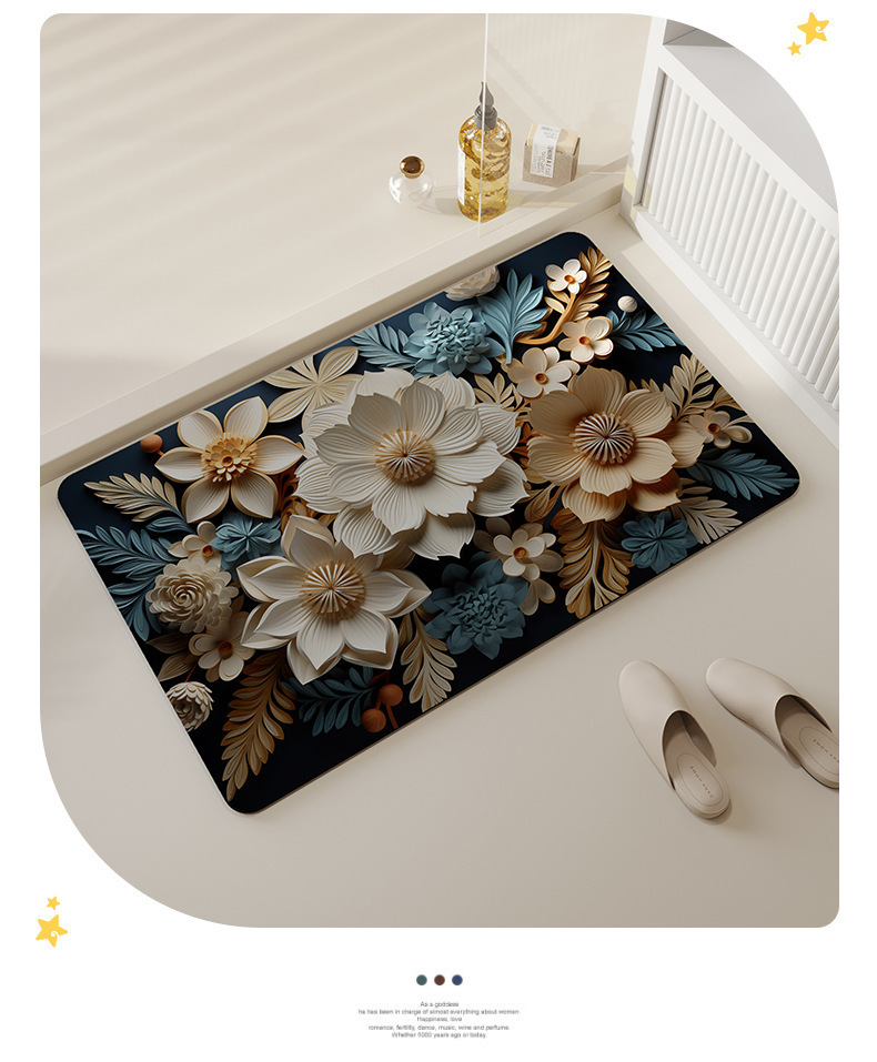 국경 3D 3 차원 꽃 욕실 매트 욕실 문 카펫 가정용 미끄럼 방지 빠른 건조 부드러운 Diatom 진흙 매트