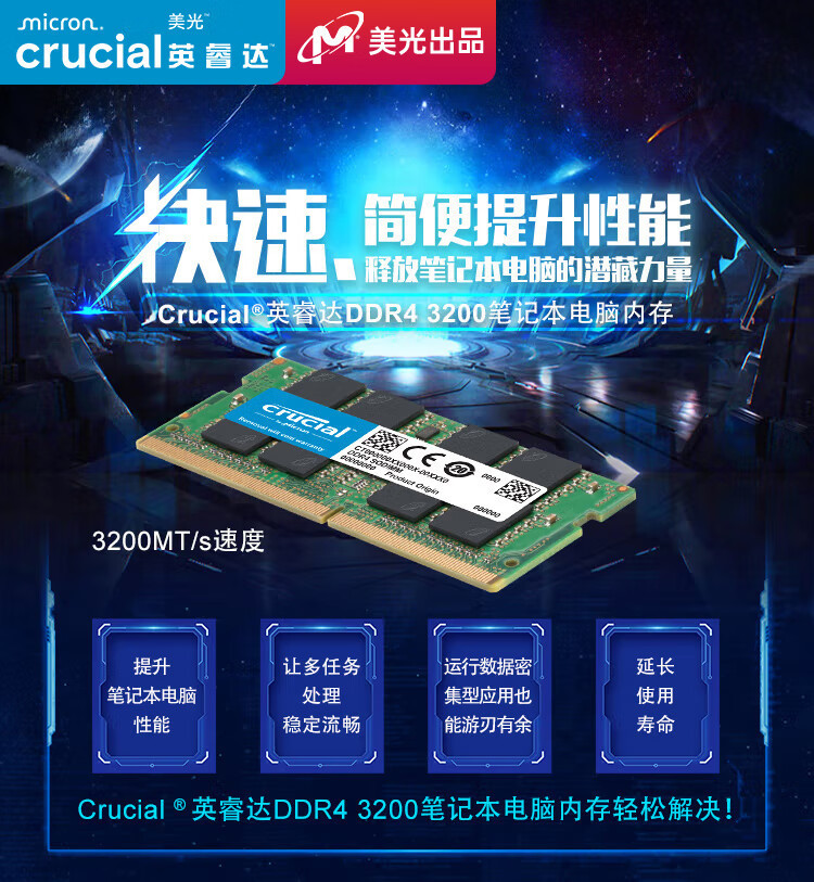 Crucial Yingruida 32GB DDR4 3200 주파수 노트북 메모리 모듈 Micron 오리지널 과립