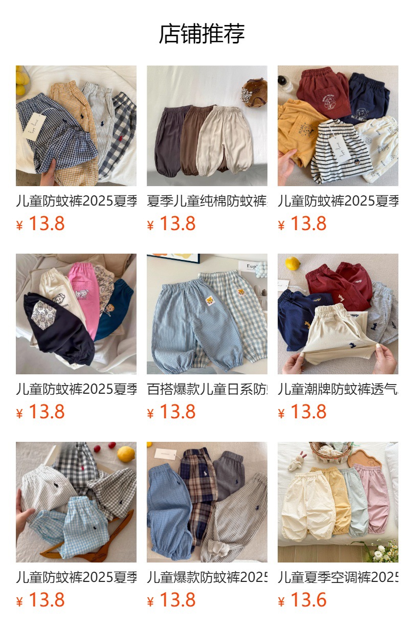 어린이 클래스 모기 방지 바지 2025 여름 소년과 소녀를위한 새로운 스타일의 통기성 바지 만화 아기 줄무늬 블루머 트렌디스토어 가기