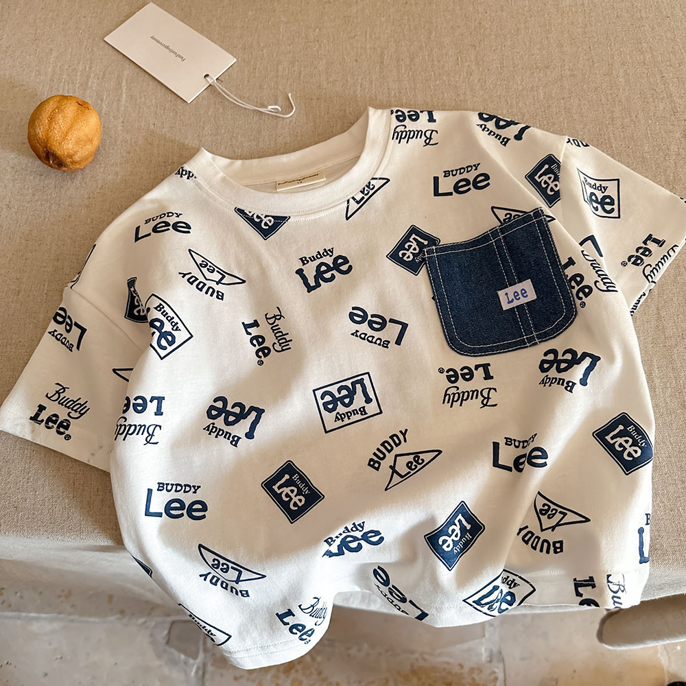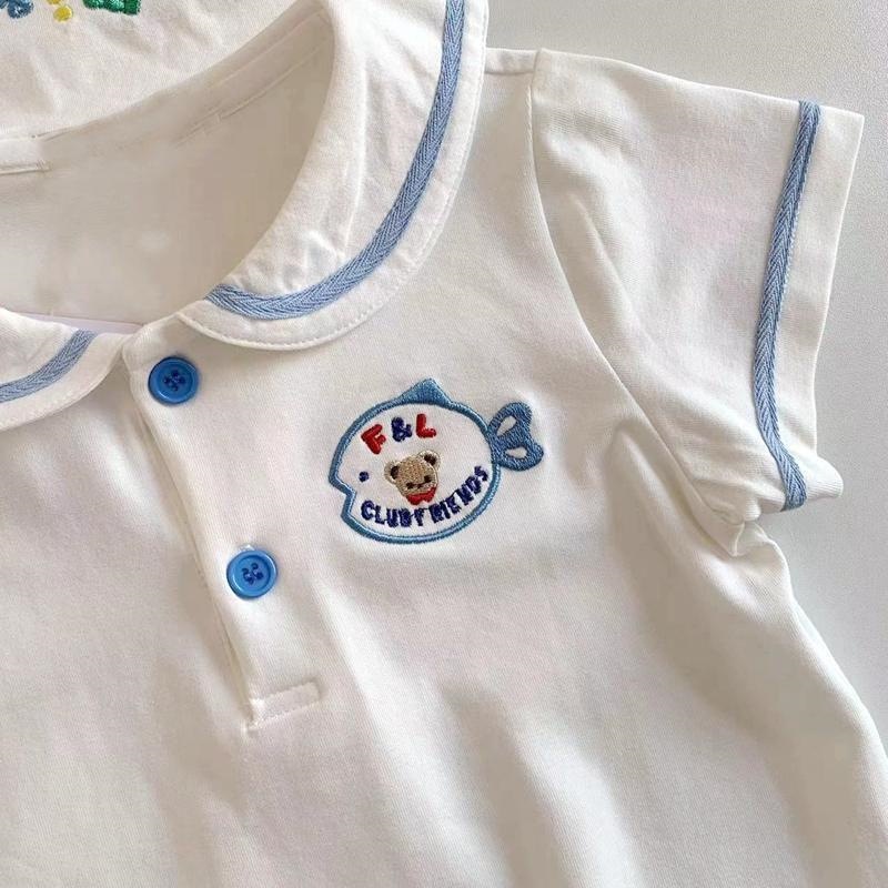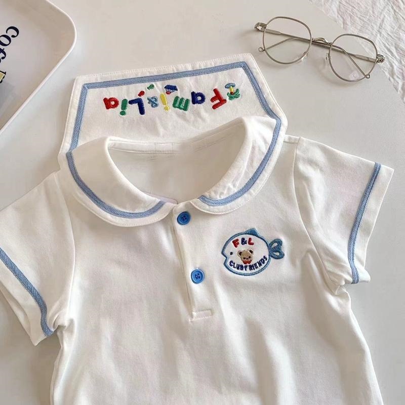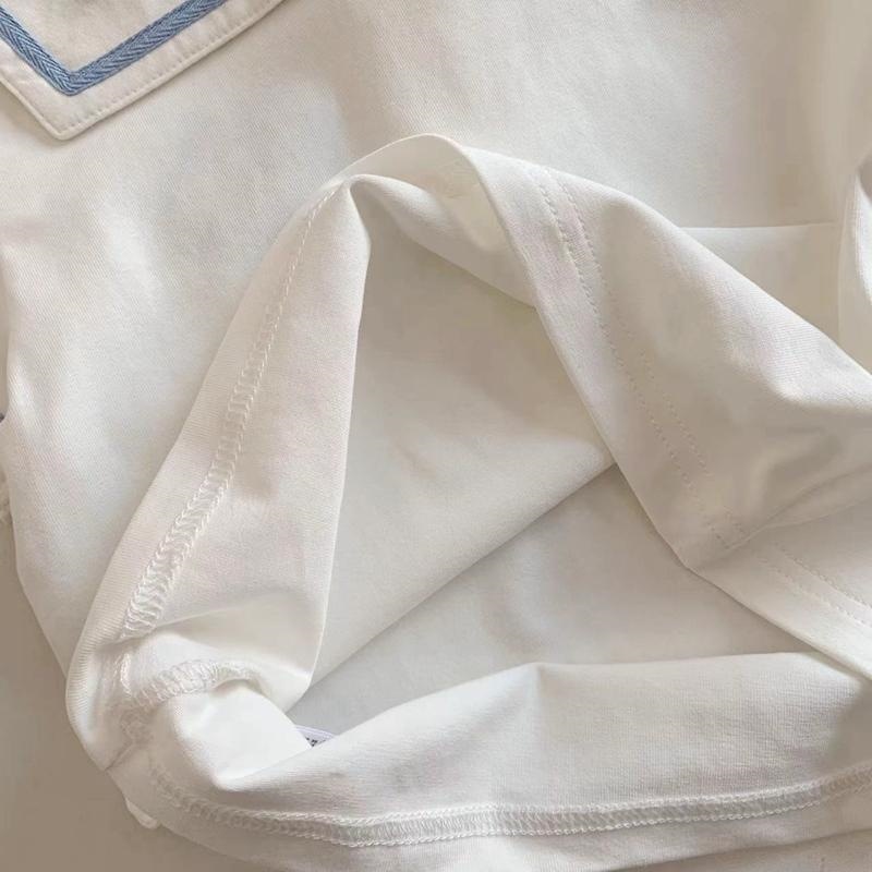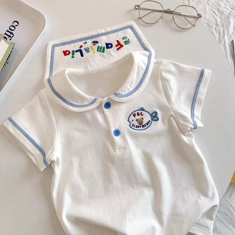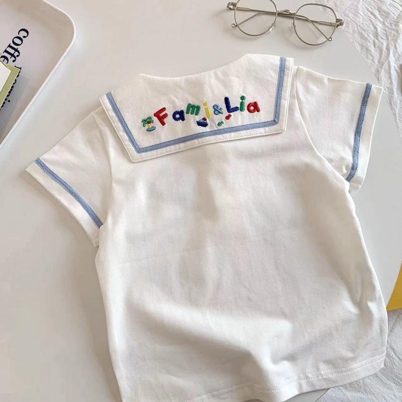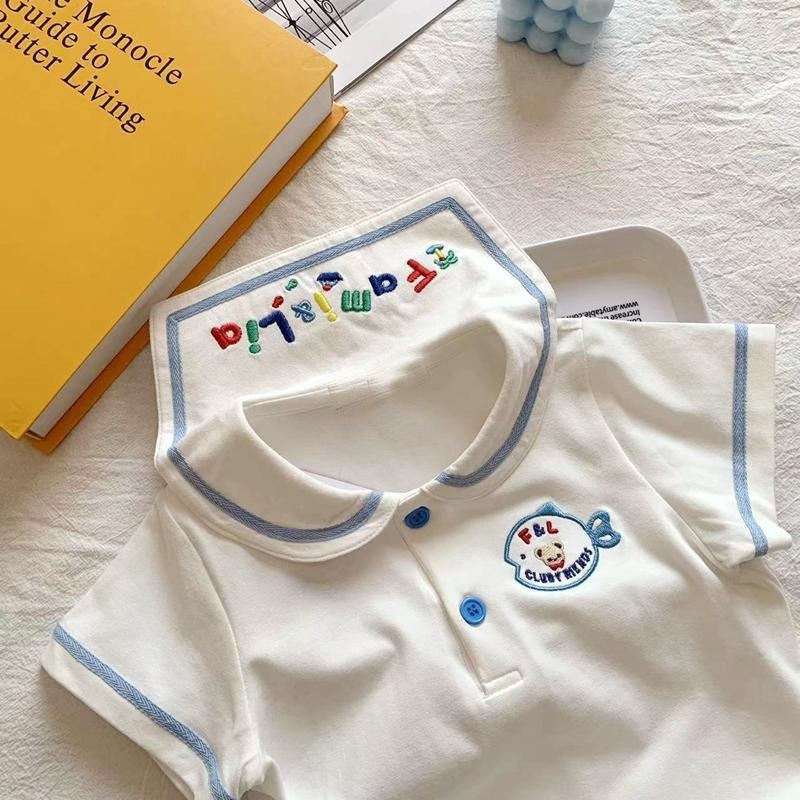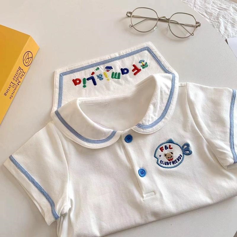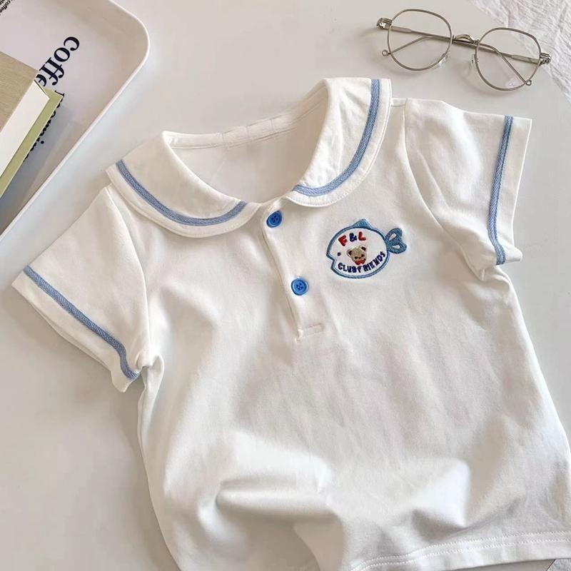 소년과 소녀 옷깃 반팔 티셔츠 일본식 2025 여름 어린이 면화 흰색 반팔 탑 아기 티셔츠 유행스토어 가기