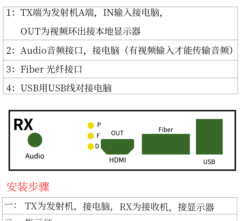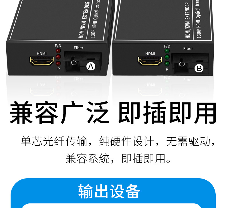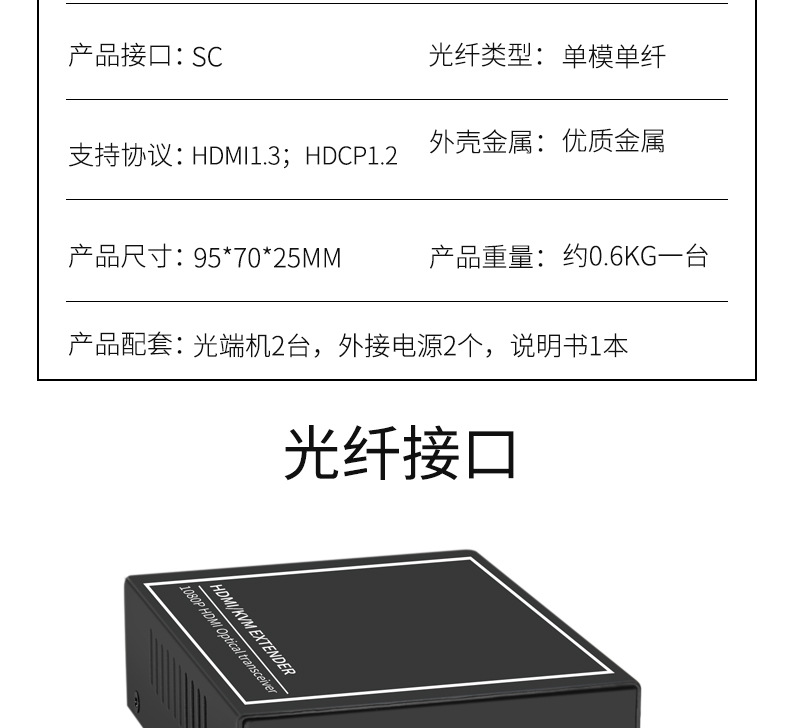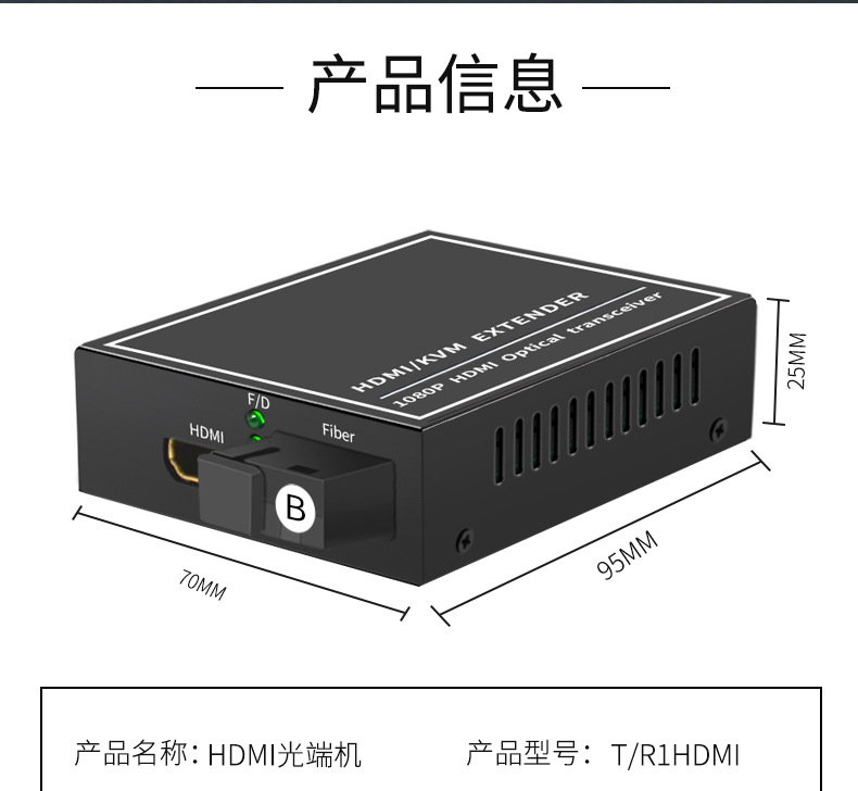 • 1채널 HDMI+루프 출력+USB 광트랜시버(1쌍)