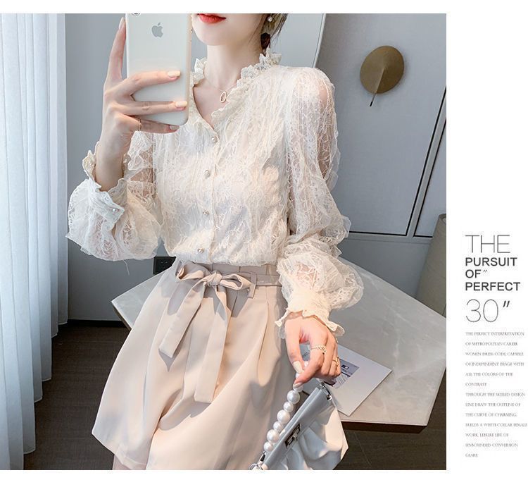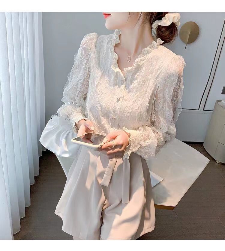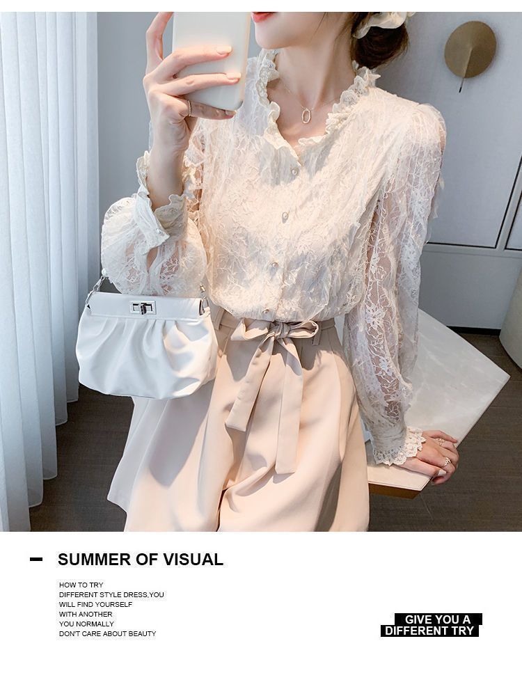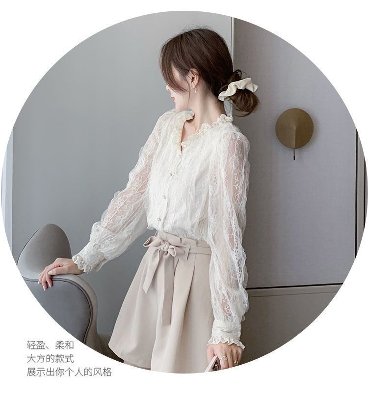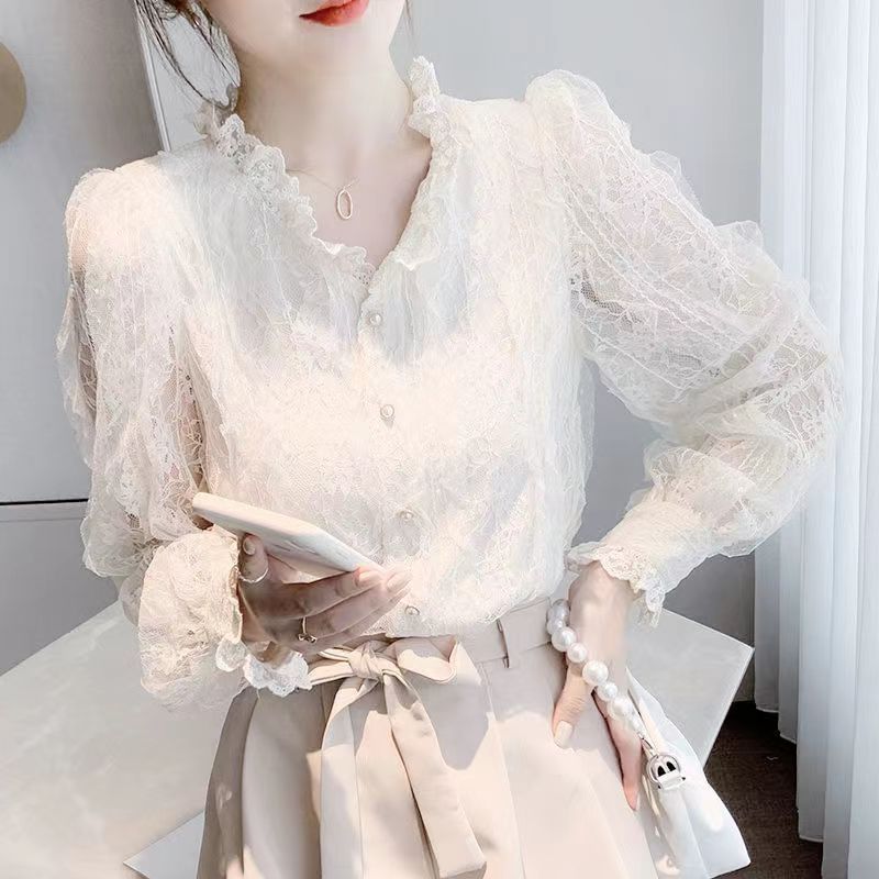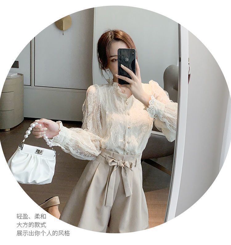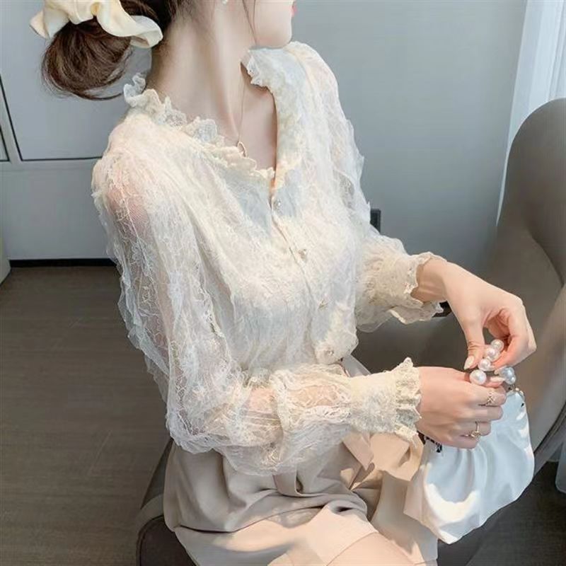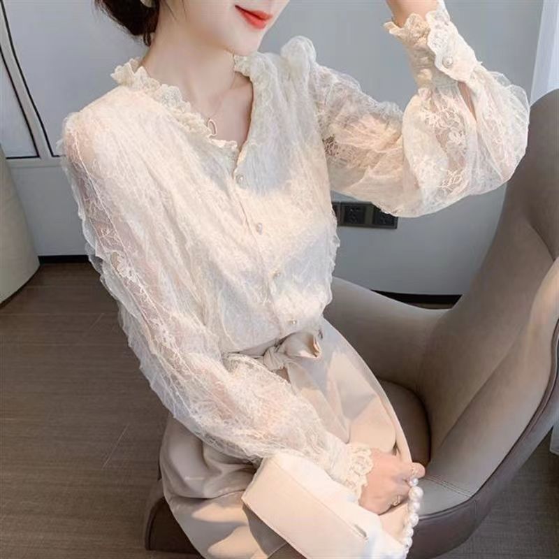 여성을 위한 초봄 프렌치 니치탑, 달콤하고 부드러운 디자인의 레이스 셔츠, 요정 긴팔 쉬폰 셔츠스토어 가기