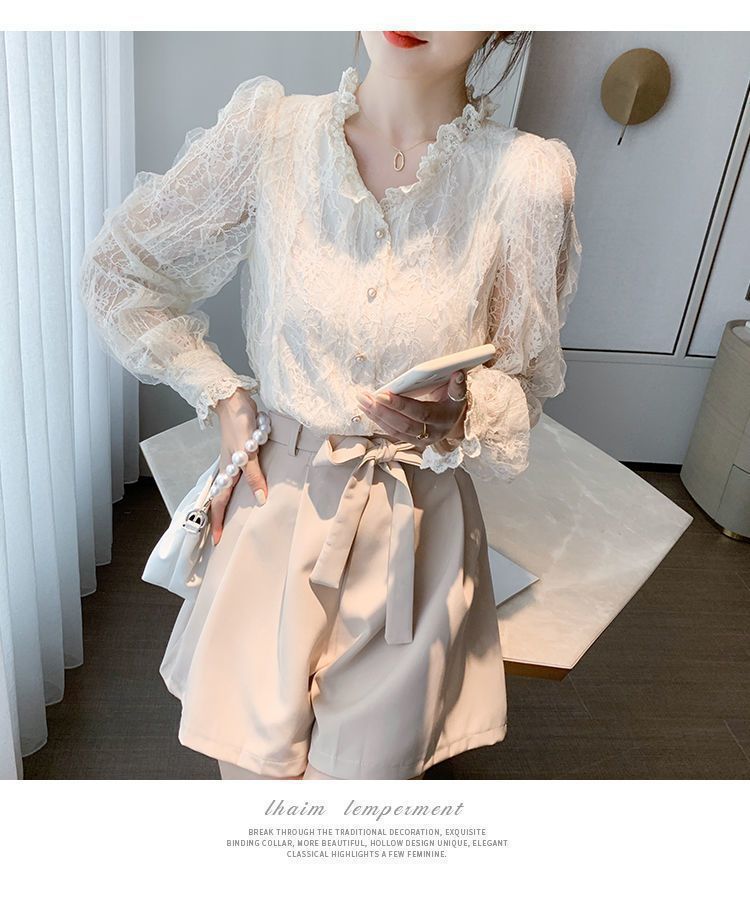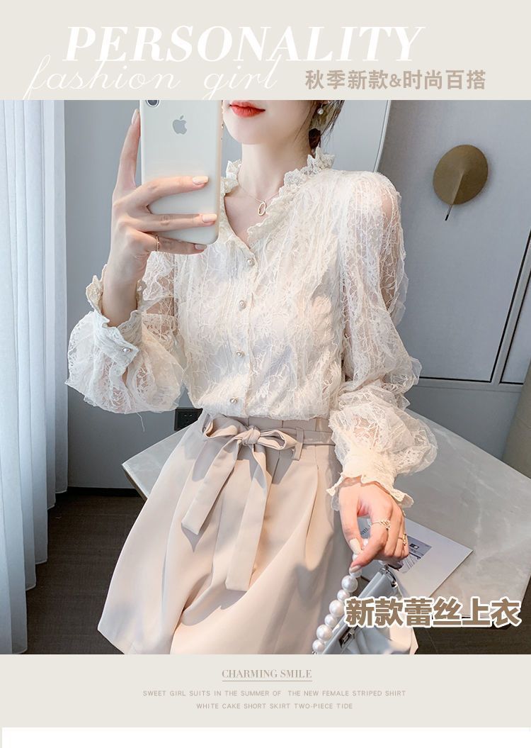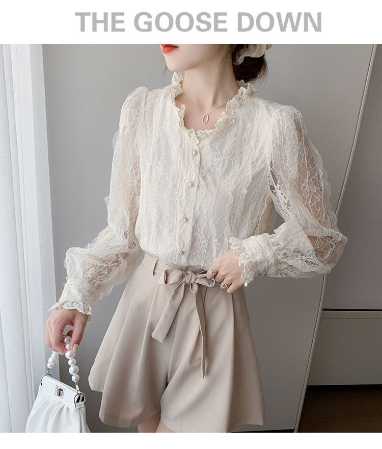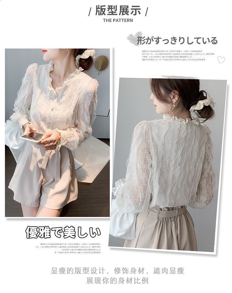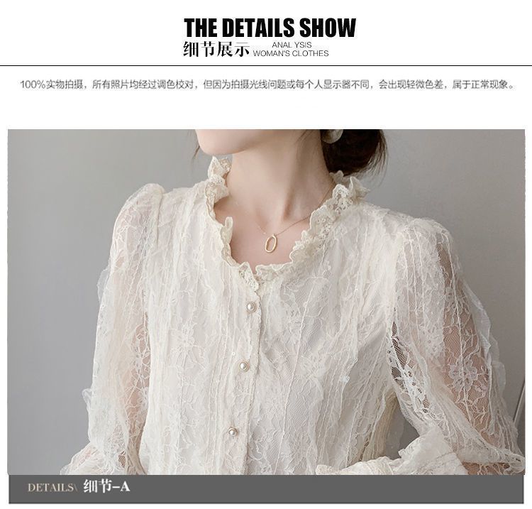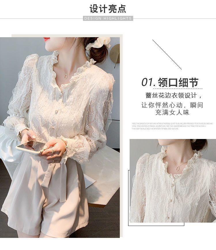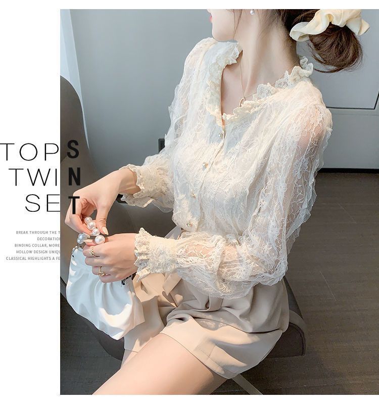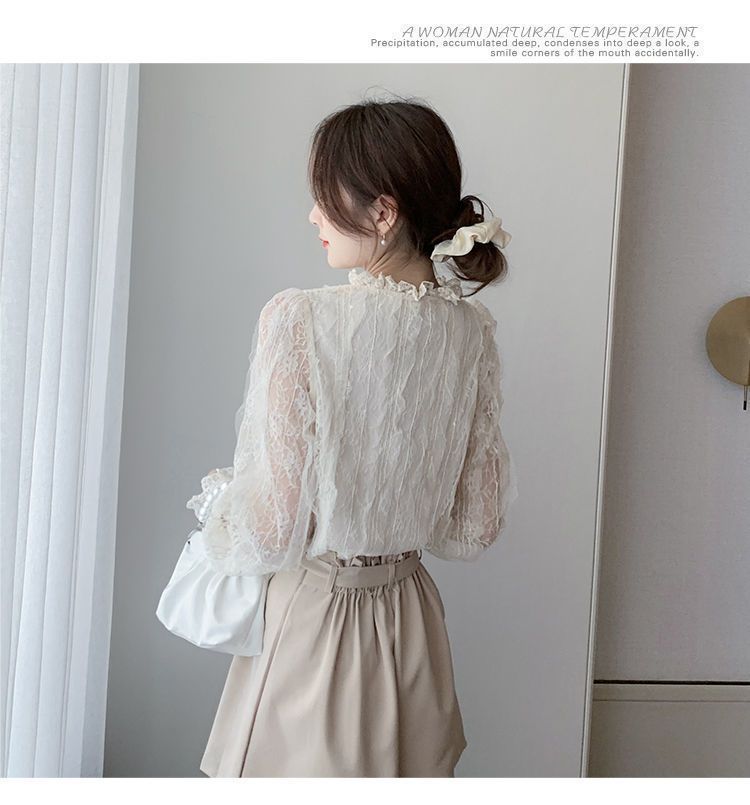 여성을 위한 초봄 프렌치 니치탑, 달콤하고 부드러운 디자인의 레이스 셔츠, 요정 긴팔 쉬폰 셔츠스토어 가기