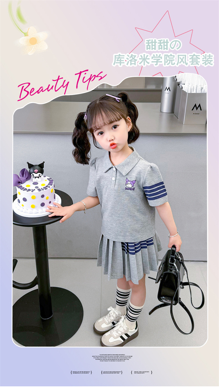 여자 여름 세트 아기 소녀 만화 폴로 칼라 쿠 로미 대학 스타일 소녀 반팔 주름 치마 투피스 세트