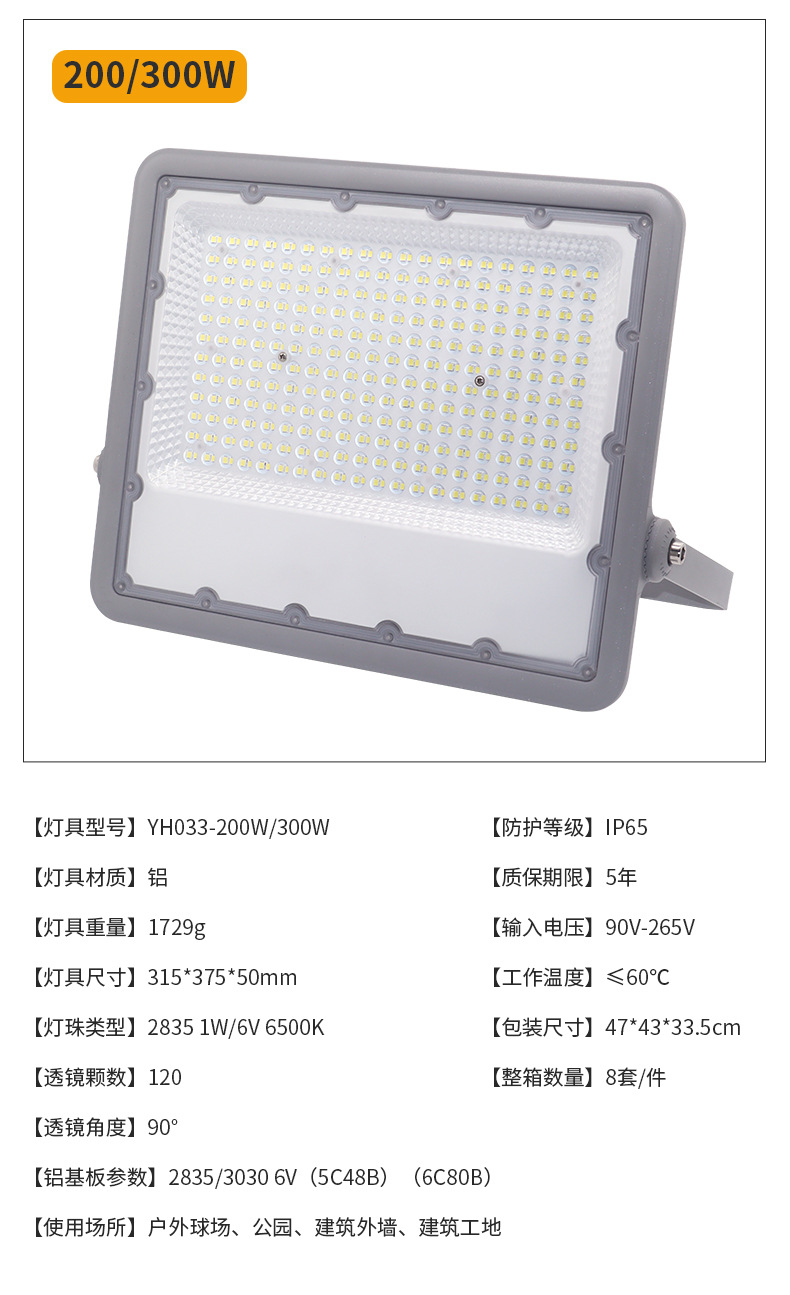 초박형 방수 led 홍수 빛 새로운 농촌 야외 조명 300w 고출력 건설 현장 공장 안뜰 조명