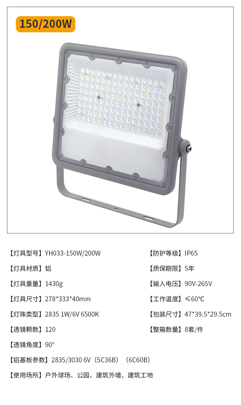 초박형 방수 led 홍수 빛 새로운 농촌 야외 조명 300w 고출력 건설 현장 공장 안뜰 조명스토어 가기