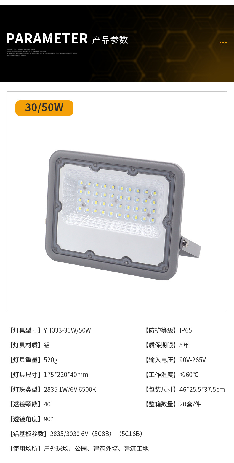 • 50W 백색광 AC180-265V