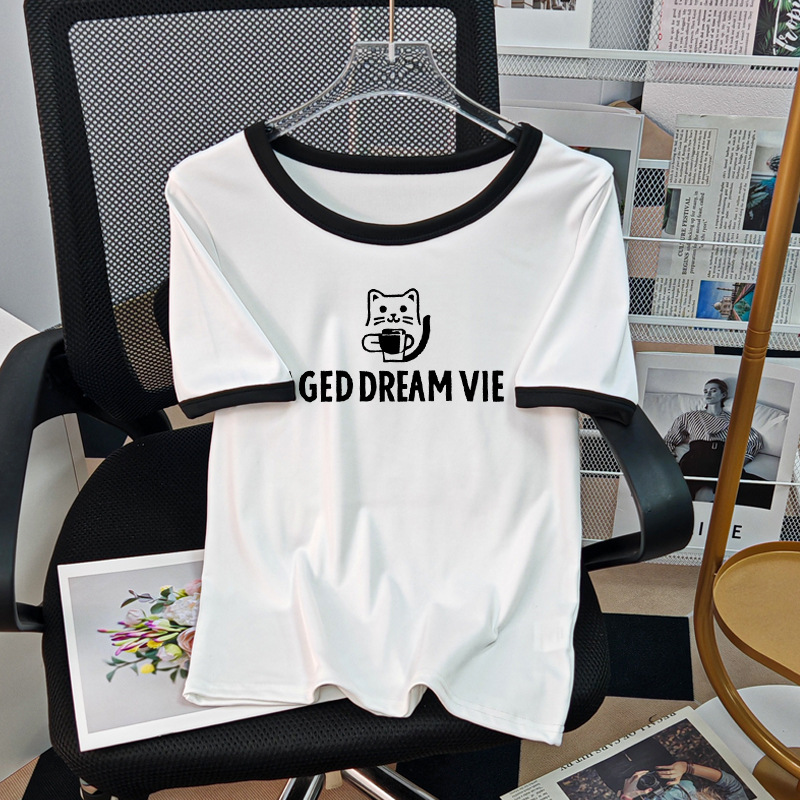 스티치 대비 색 칼라 슬림 아이스 실크 반팔 티셔츠 봄 여름 가을 새로운 정장 여성 캐주얼 스포츠 반바지