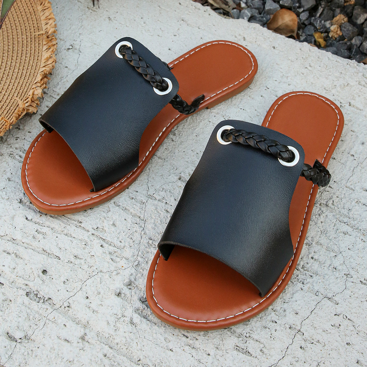 동남 아시아 대외 무역 여름 새로운 솔리드 컬러 여성 슬리퍼 플러스 사이즈 짠 간단한 매일 외부 착용 비치 슬리퍼