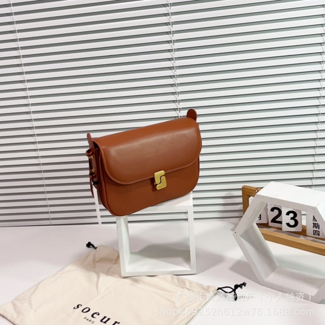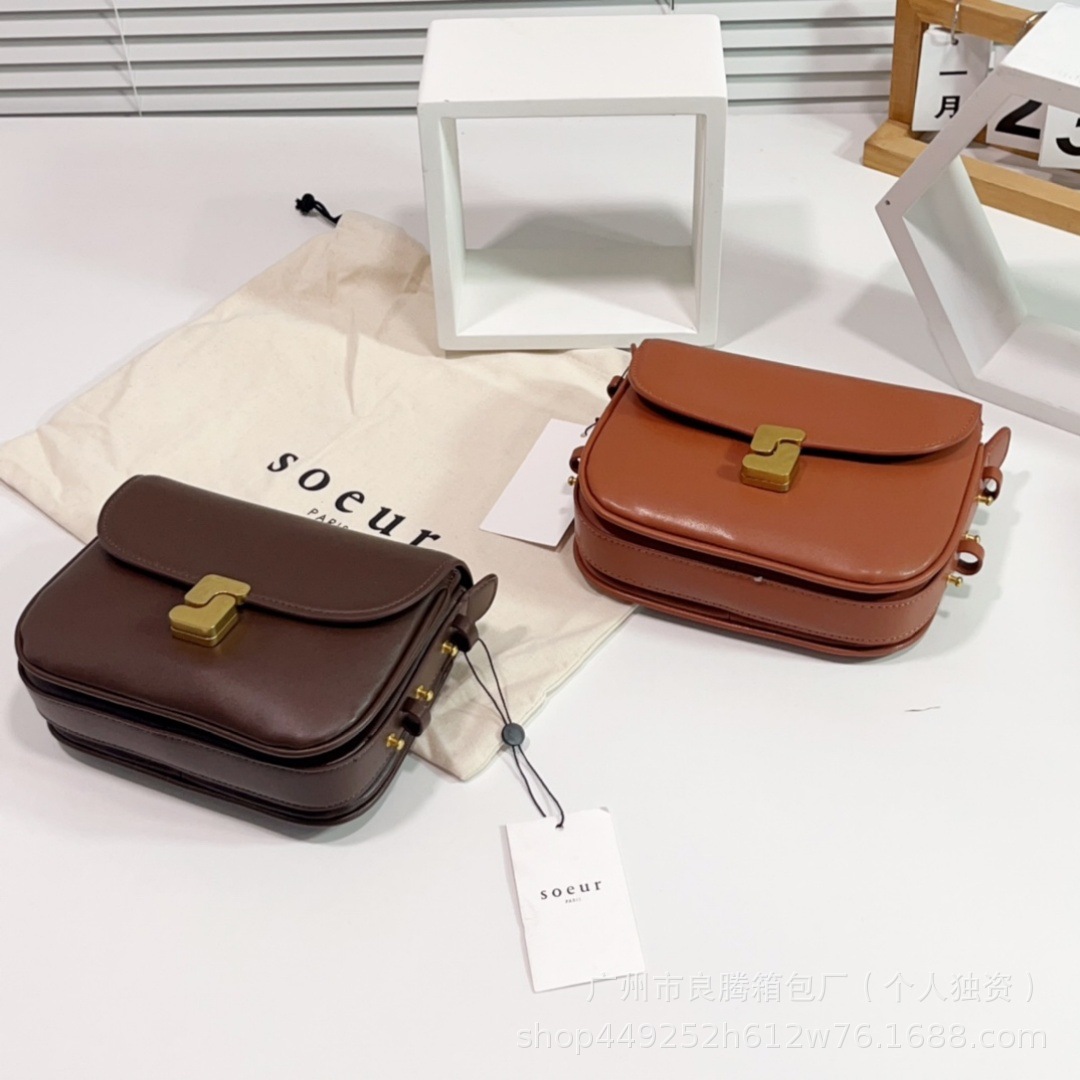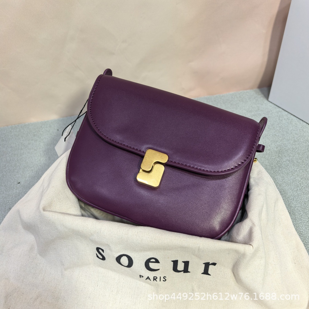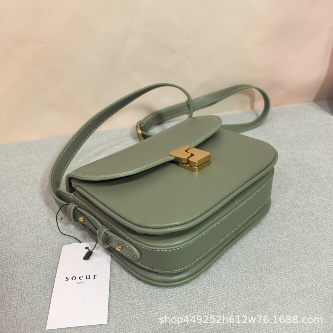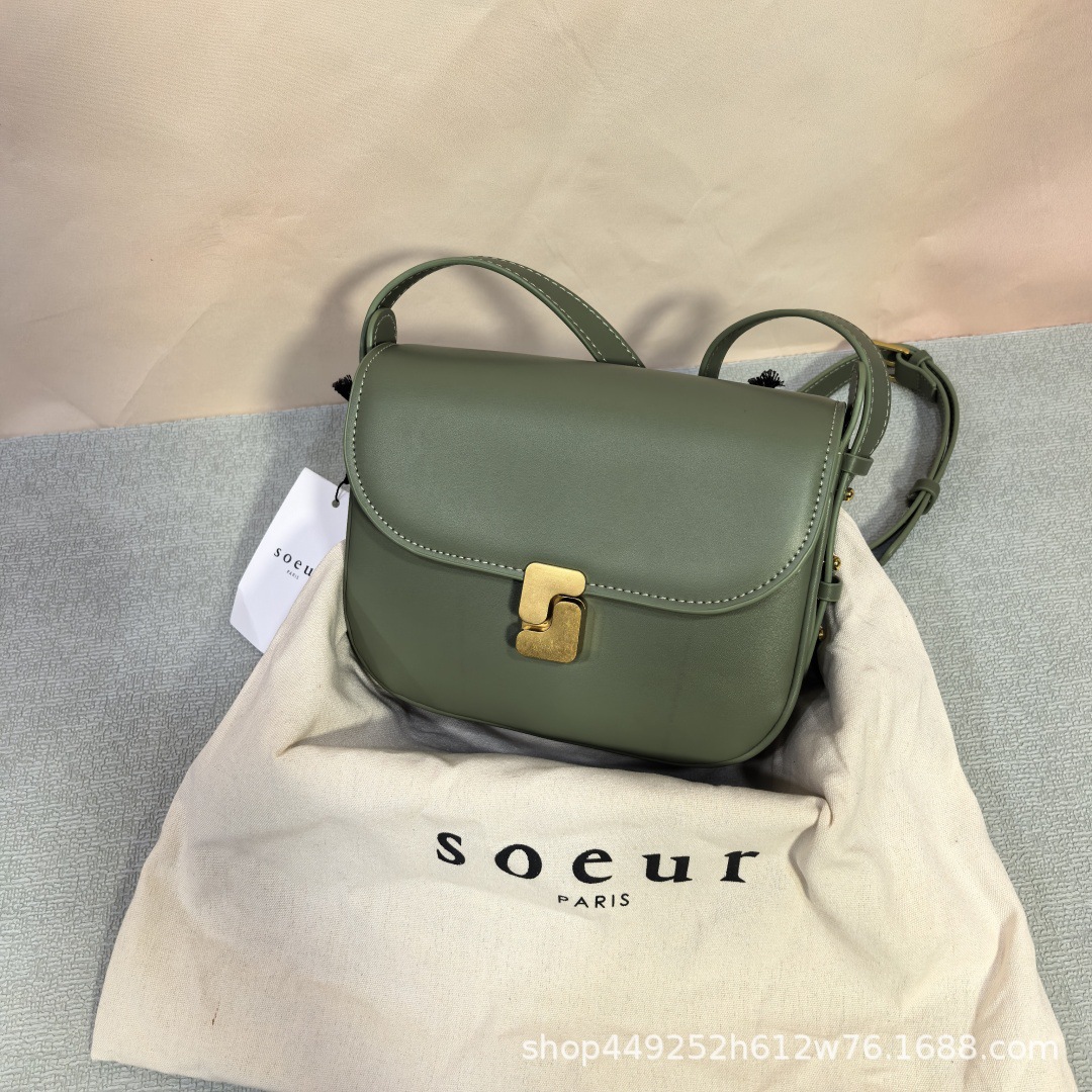 프랑스 니치 SOEUR 여성용 신형 천연가죽 두부백, 고급 싱글 숄더 크로스바디 스몰 스퀘어백, 여성용 통근가방스토어 가기