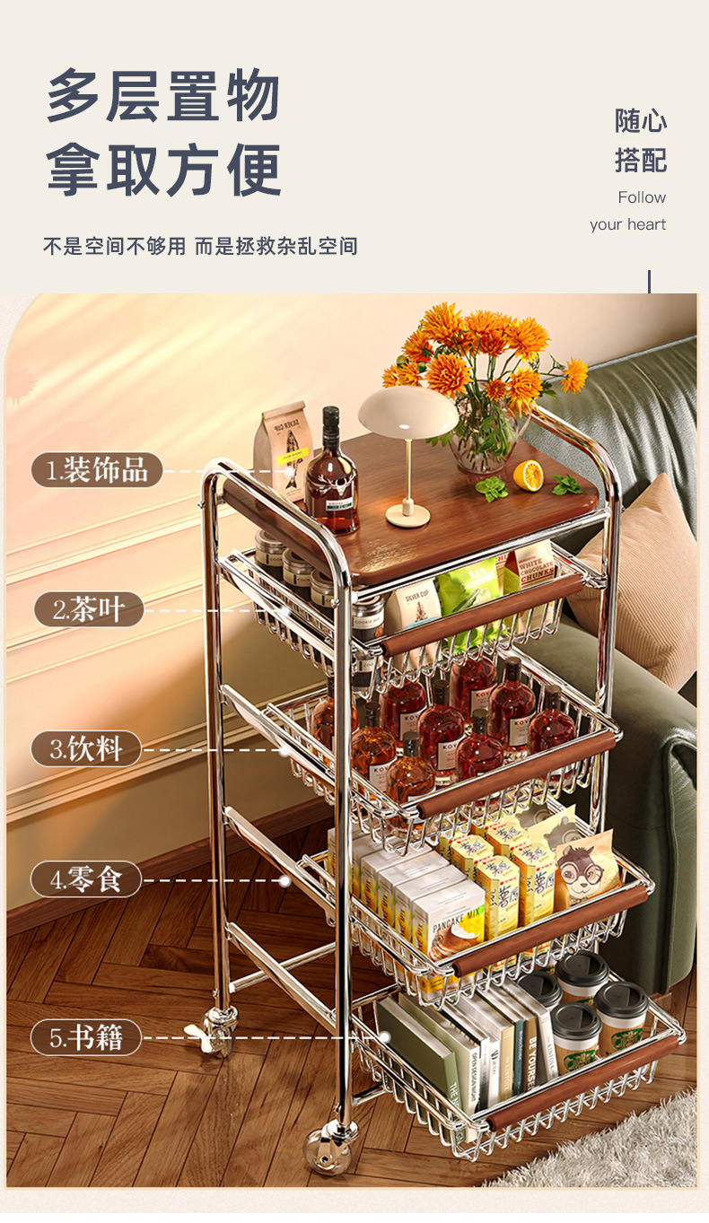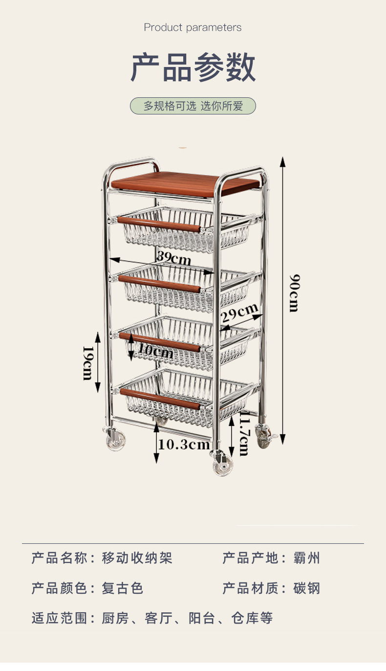 골동품 스낵 저장 랙 다기능 갭 카트 다층 과일 및 야채 주방 야채 바구니 이동식 저장 랙