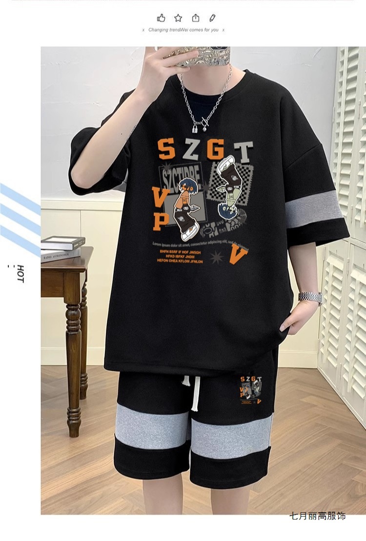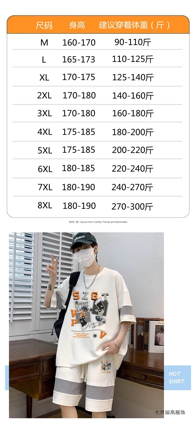 남성용 플러스 사이즈 여름 캐주얼 슈트, 와플 반팔 티셔츠, 청소년 및 학생용 루즈한 스포츠 5부 바지, Ligao스토어 가기