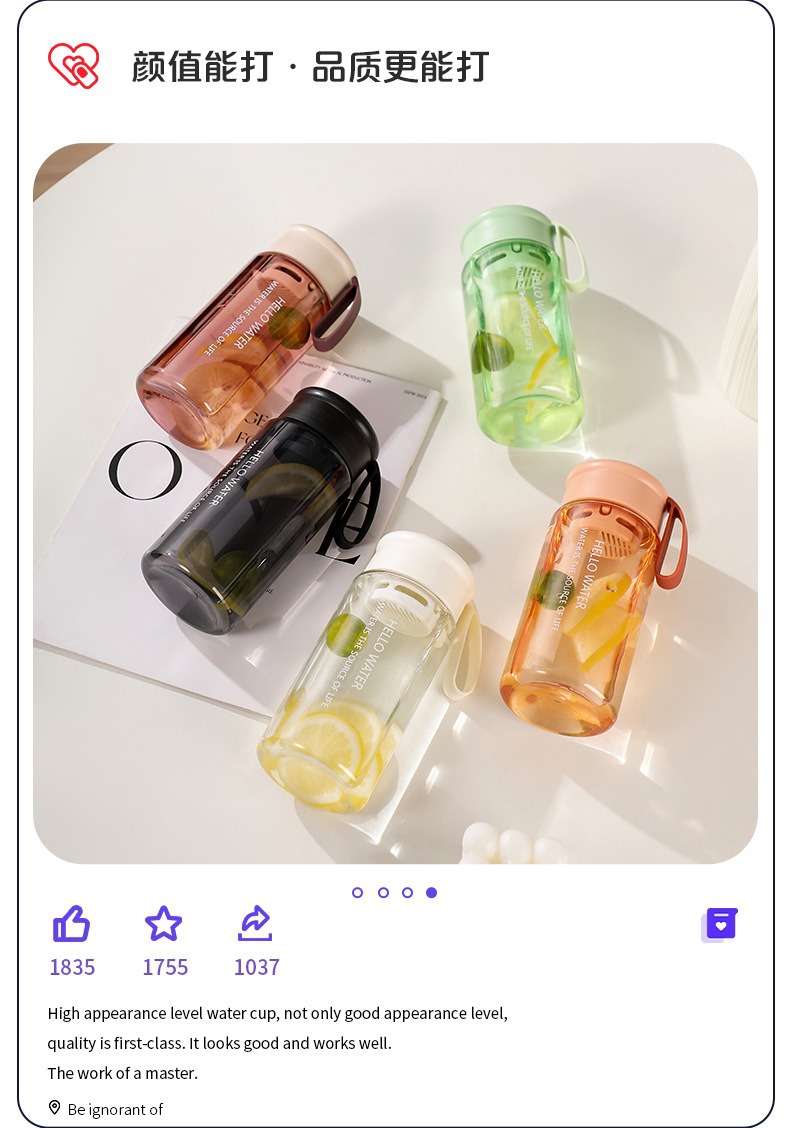 고급스러운 휴대용 로프 컵, 인터넷 연예인 인스 심플 플라스틱 컵, 두껍고 낙하 방지, 대용량 스포츠 워터컵스토어 가기
