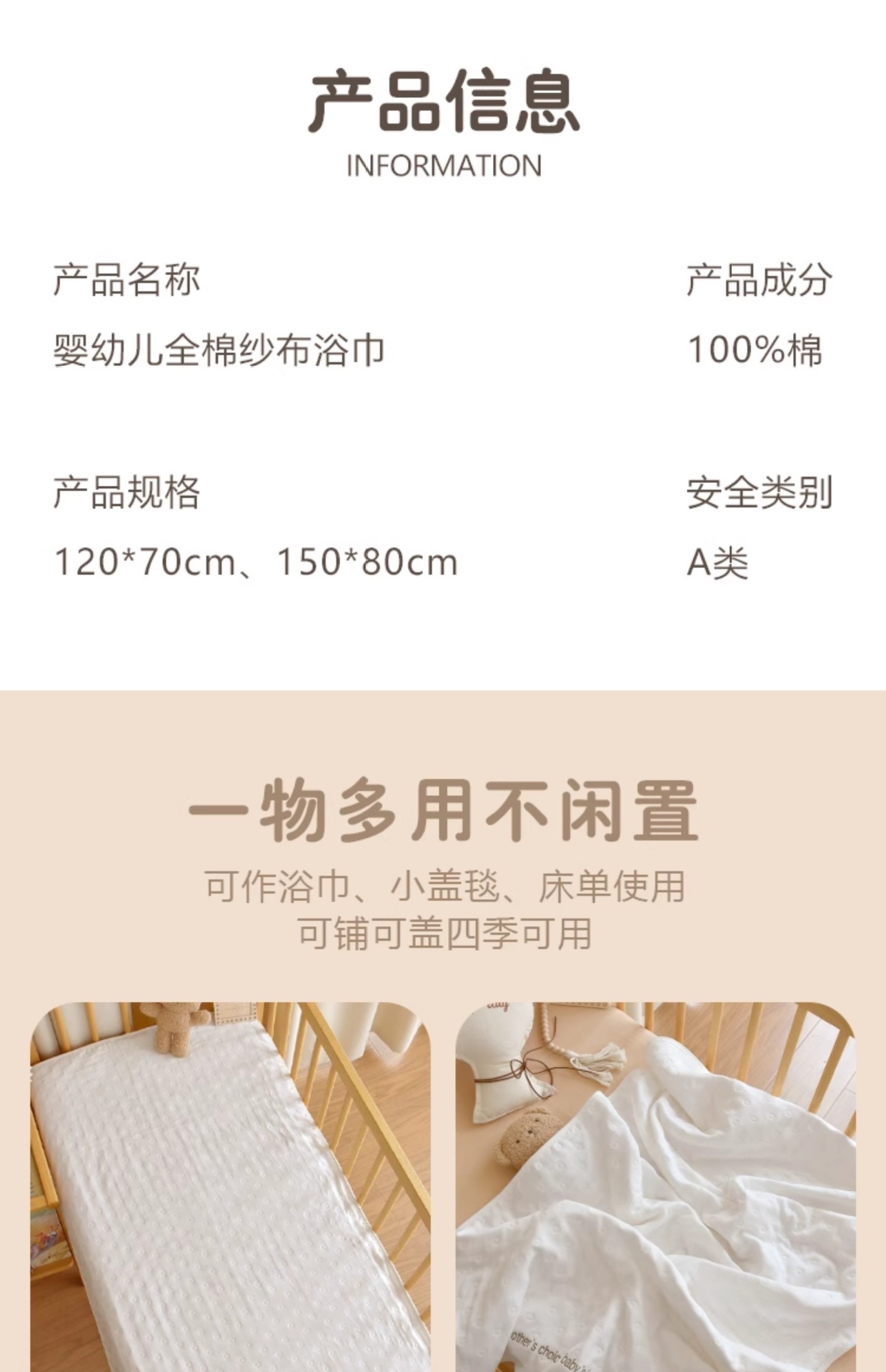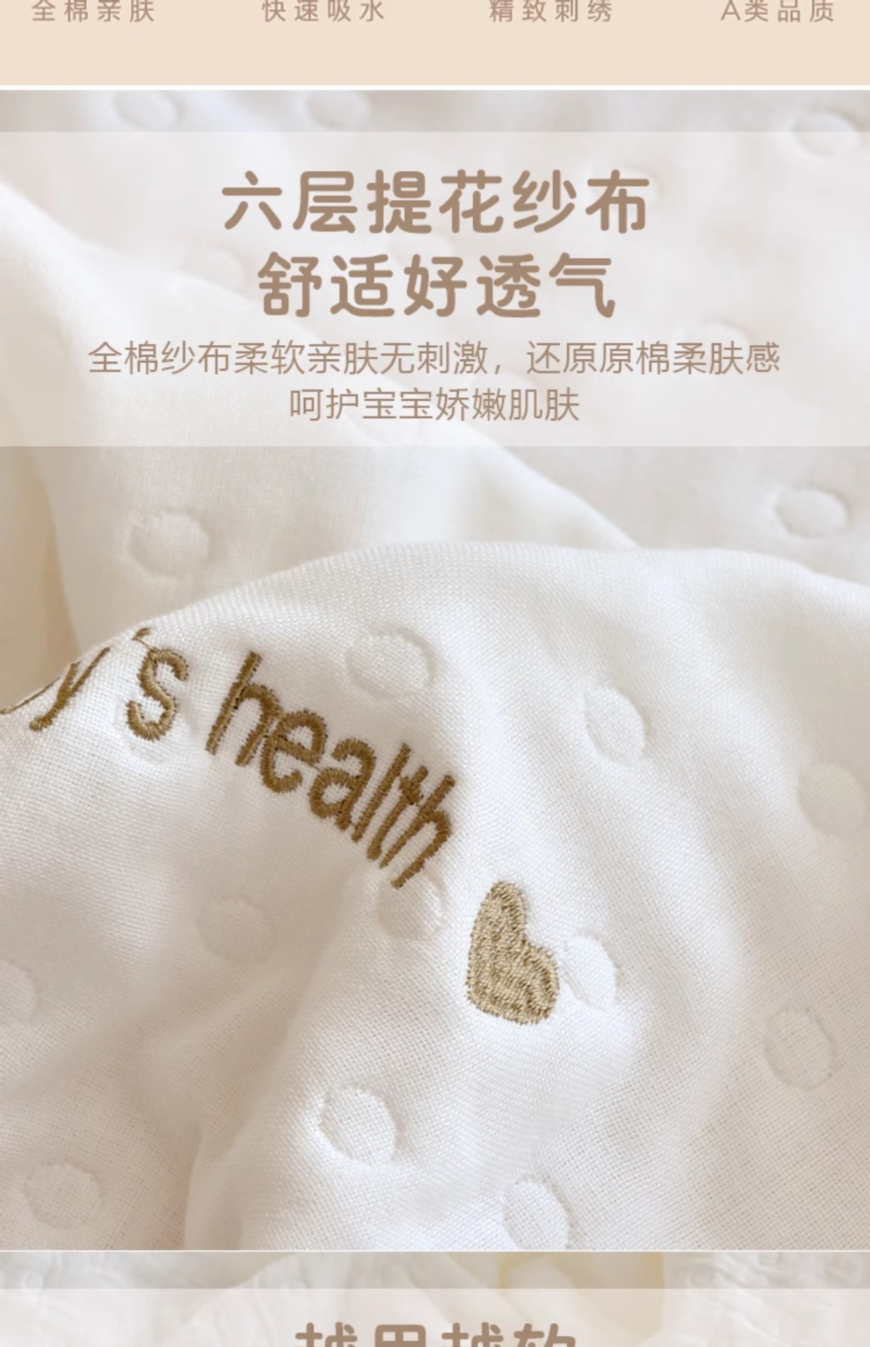 六层纱布吸汗透气不闷热,四季可用不闲置
