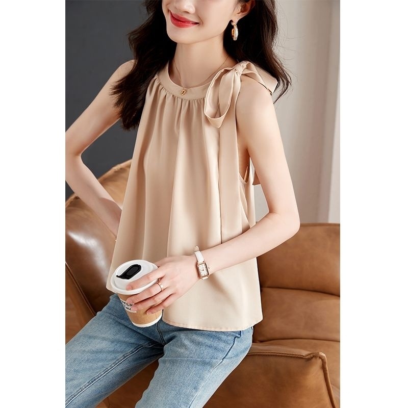 레이디 스타일 여성용 다용도 아우터 패셔너블 쉬폰 셔츠 2024 여름 신작 스위트 솔리드 컬러 홀터넥 캐미솔 탑