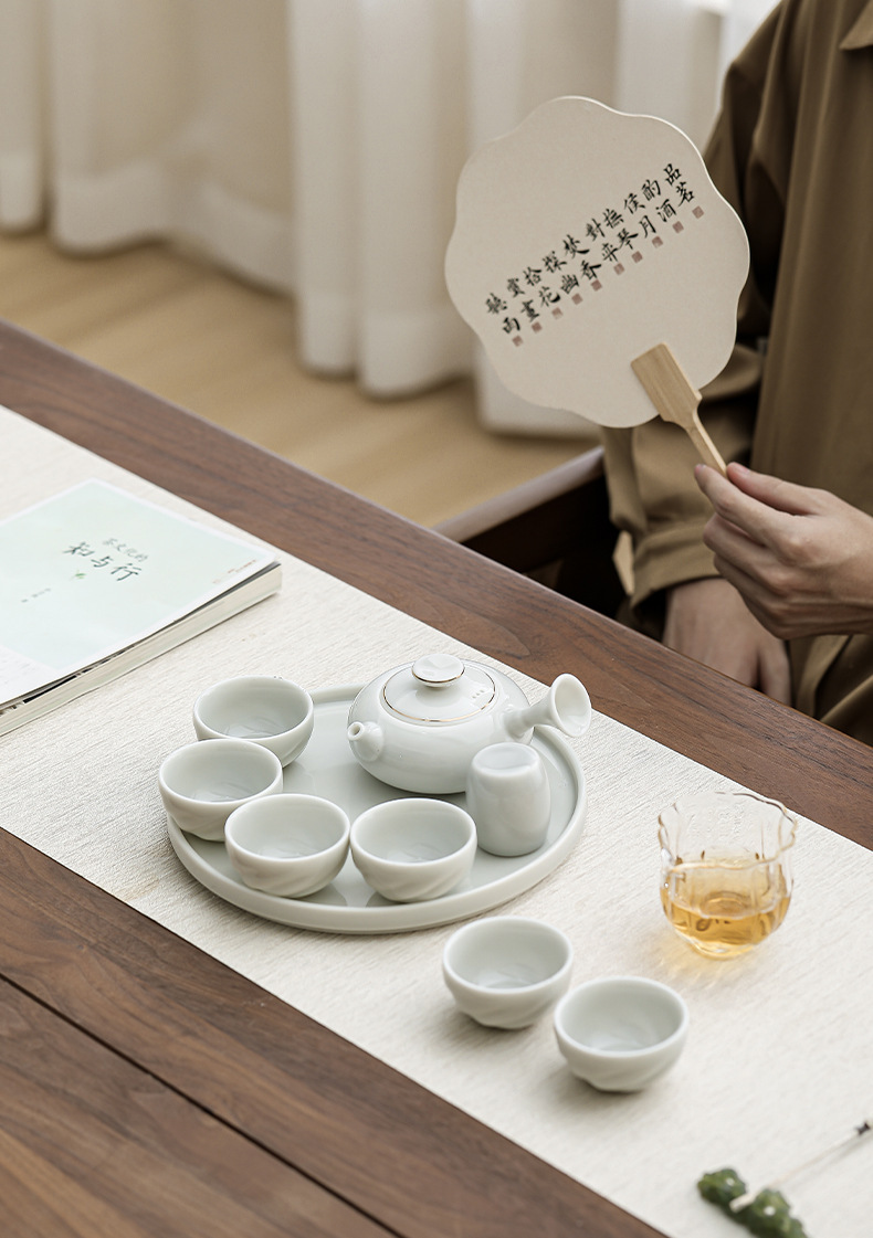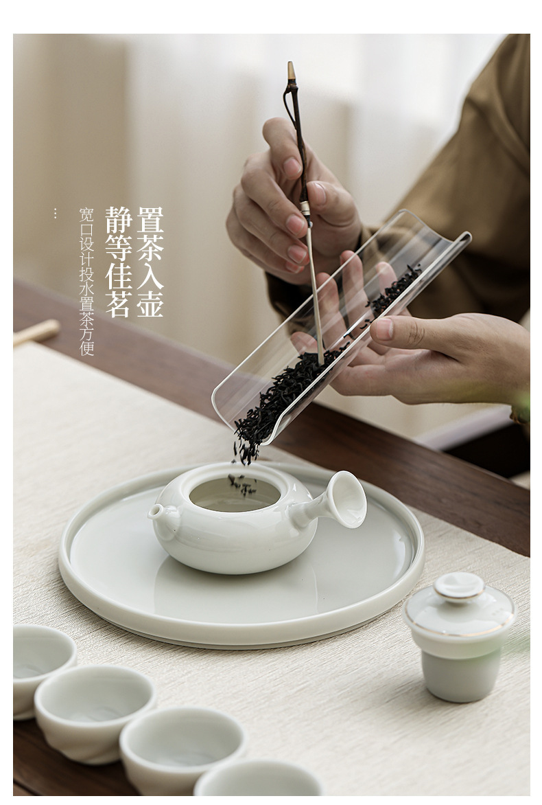 금색 손잡이 주전자, 쿵푸 차 세트, 차 주전자, 가정용 주전자, 찻잔, 세라믹 차 트레이, 선물 상자 전체 세트스토어 가기