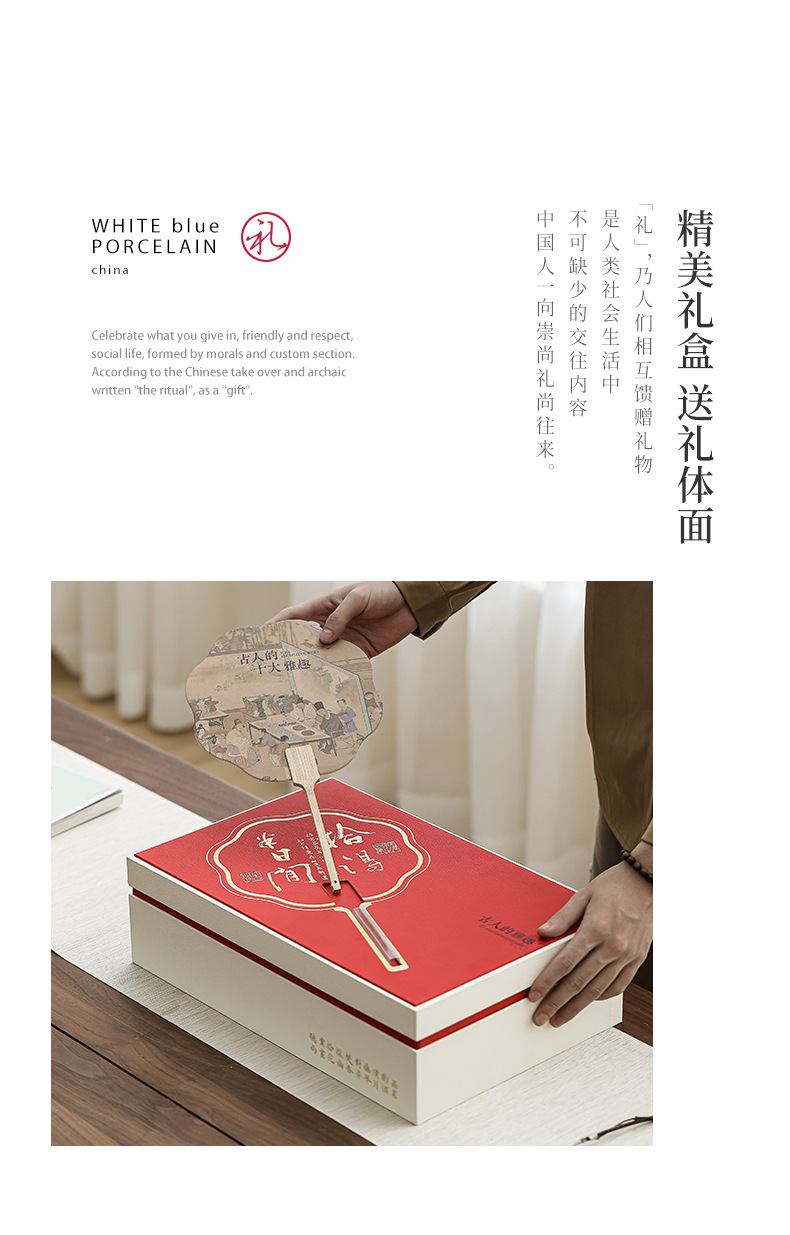 • 10피스 물고기 연꽃 연꽃 양고기 지방 옥 차 세트-옥 흰색(빨간색 선물 상자)