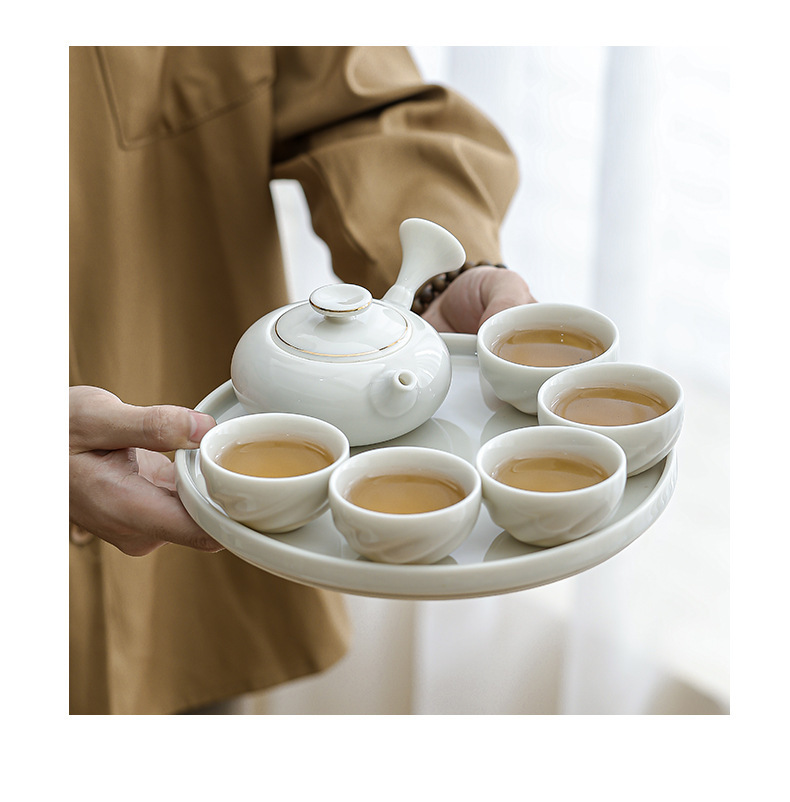 금색 손잡이 주전자, 쿵푸 차 세트, 차 주전자, 가정용 주전자, 찻잔, 세라믹 차 트레이, 선물 상자 전체 세트