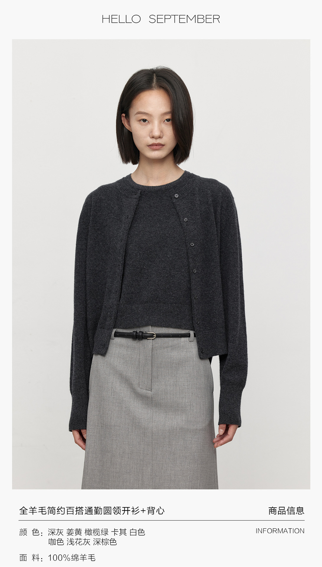 【識幾】순모 피부친화적 부드럽고 심플하며 다용도로 활용 가능한 통근용 라운드넥 숏 올리브 그린 니트 조끼