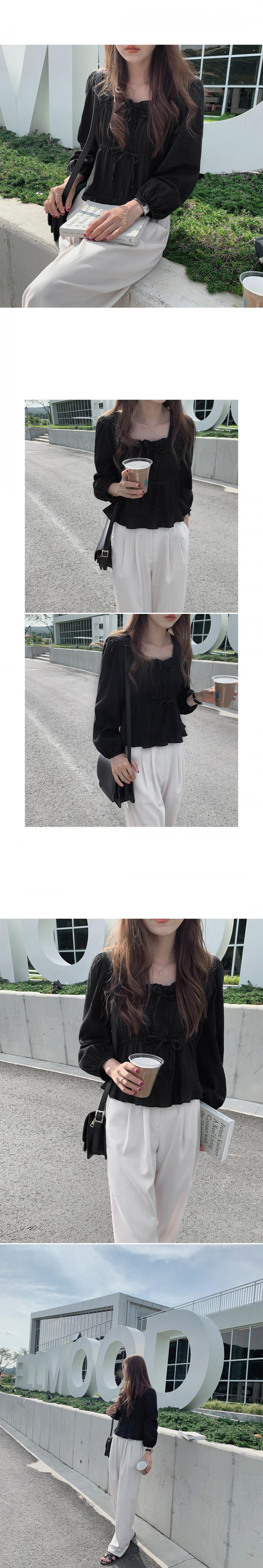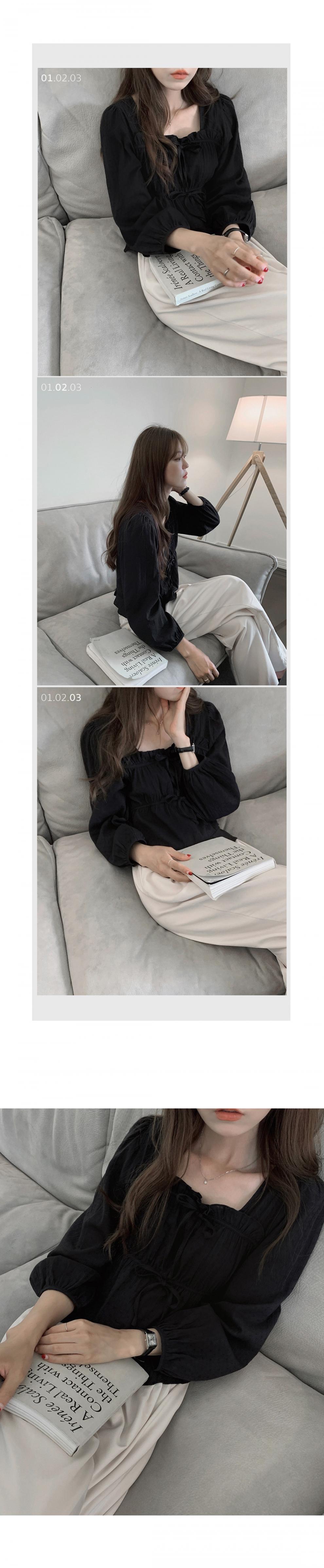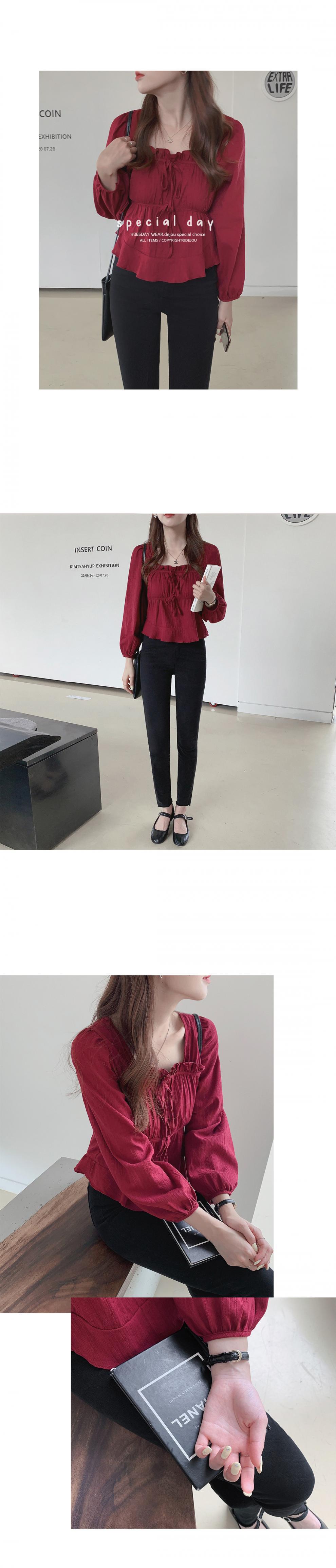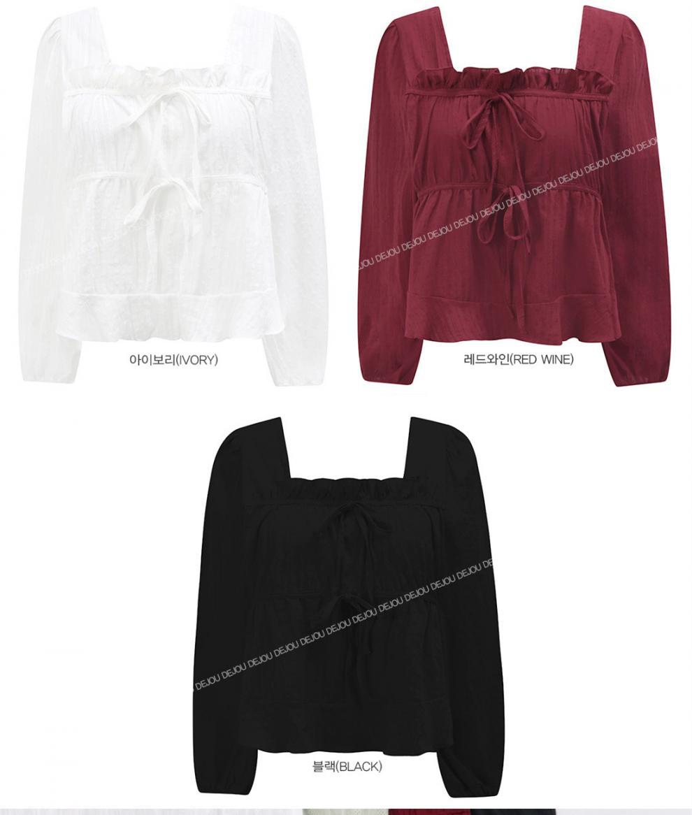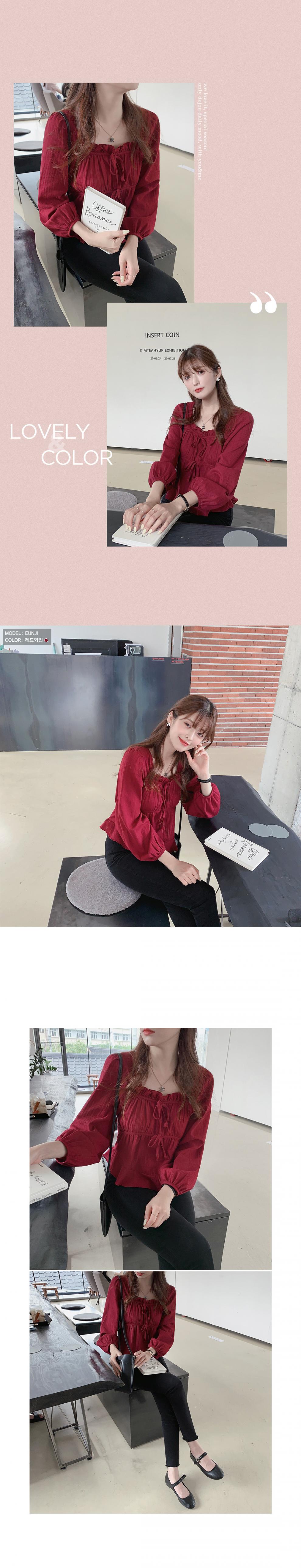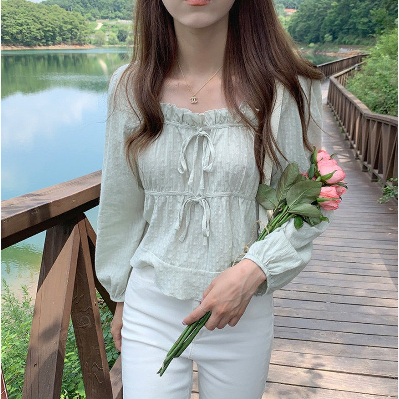한국식 세련된 봄과 가을 뉴 에이지 감소 레트로 틈새 디자인 센스 심플 스퀘어 칼라 허리 슬리밍 레이스 업 셔츠