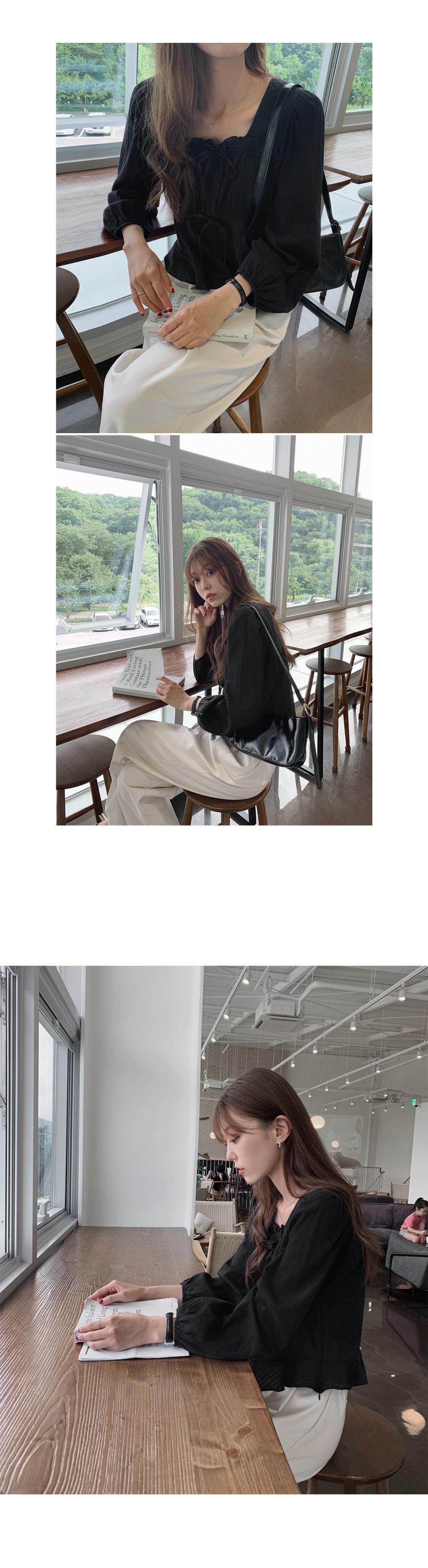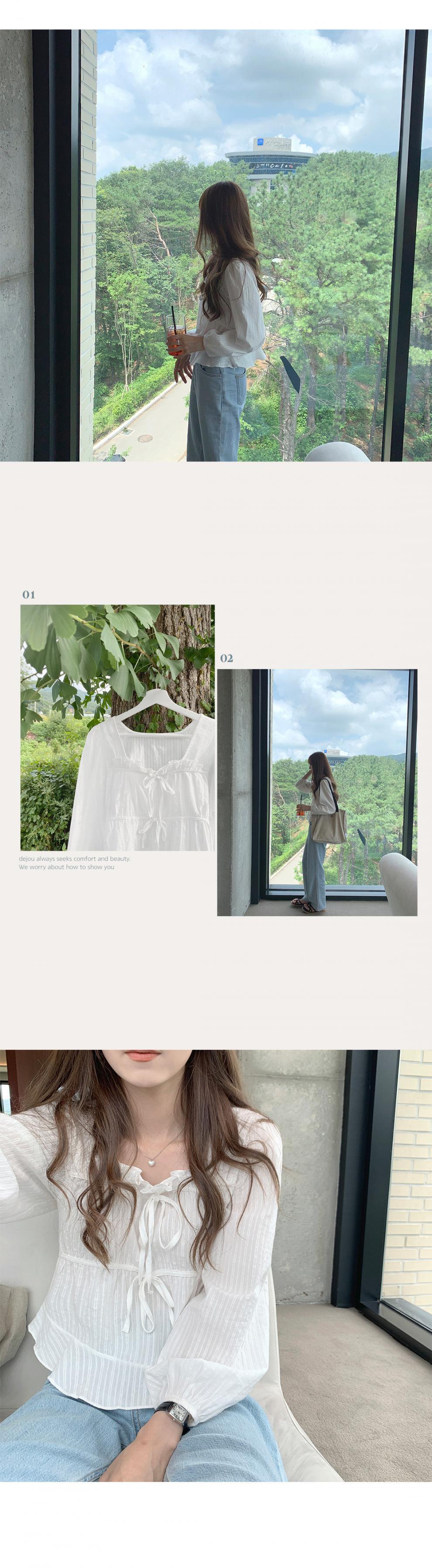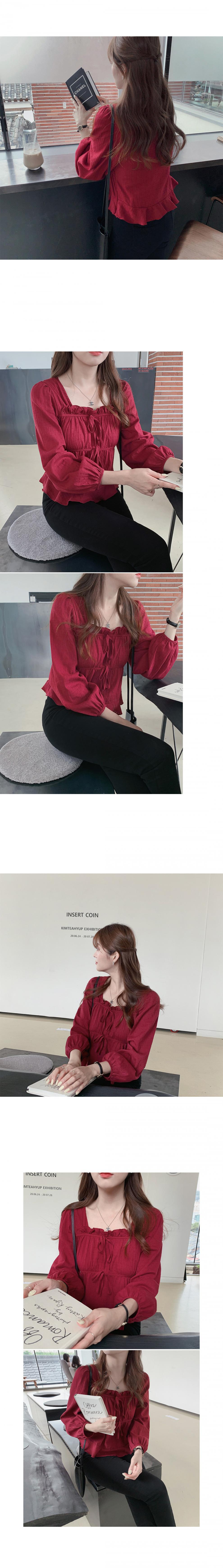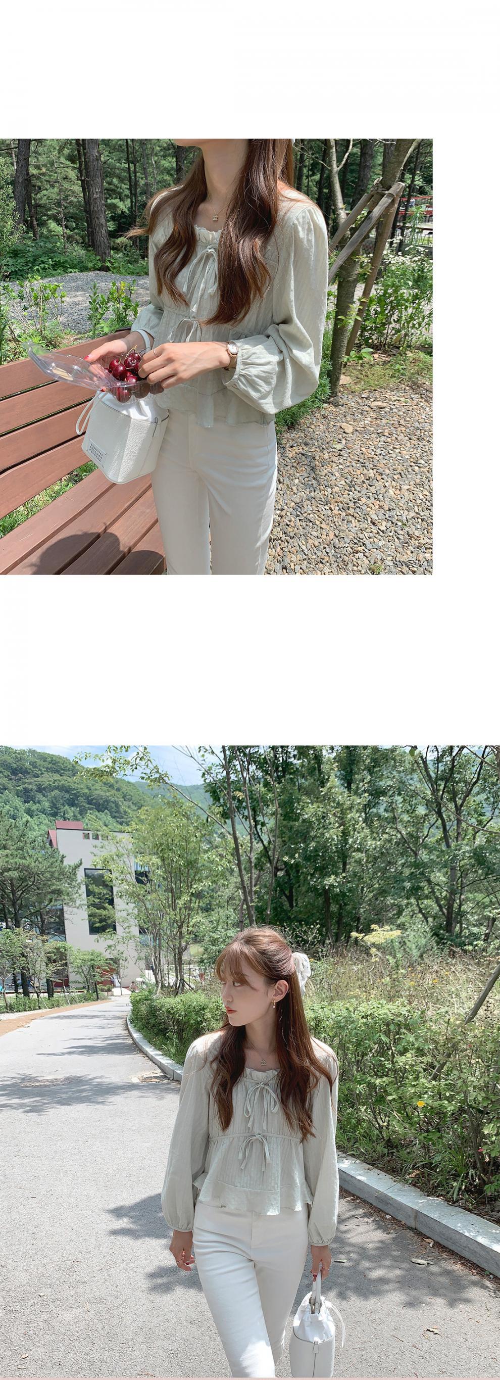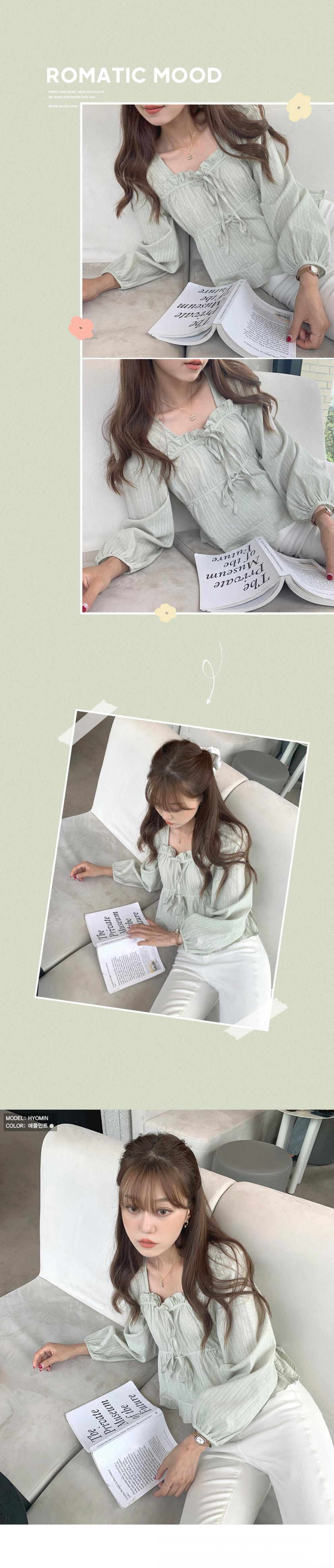 한국식 세련된 봄과 가을 뉴 에이지 감소 레트로 틈새 디자인 센스 심플 스퀘어 칼라 허리 슬리밍 레이스 업 셔츠