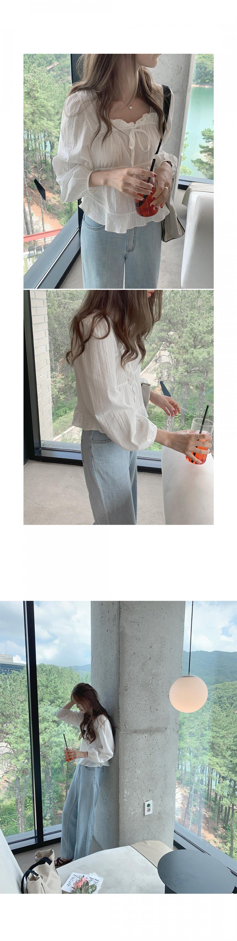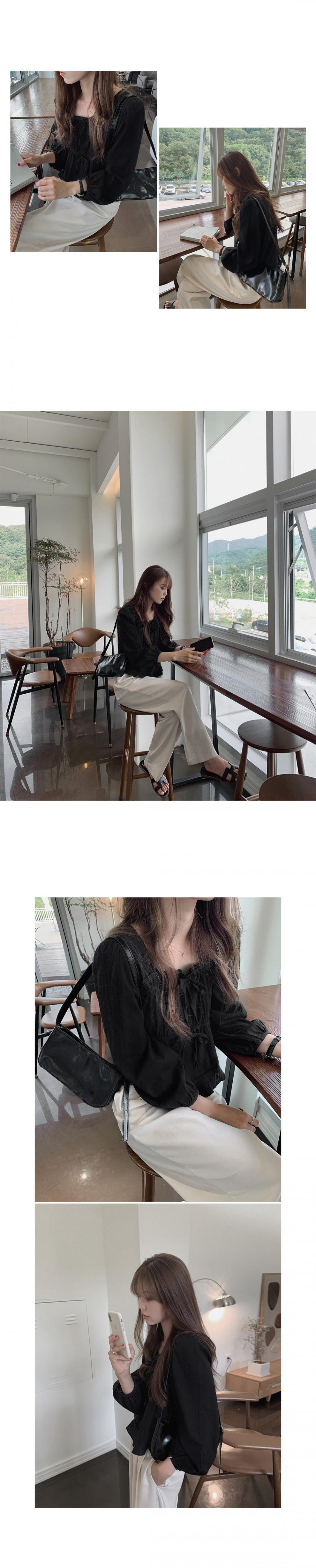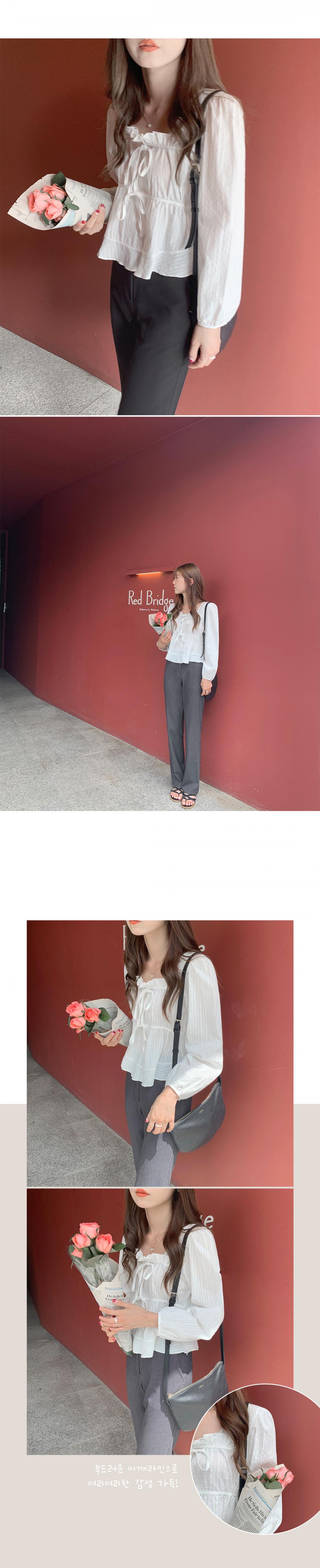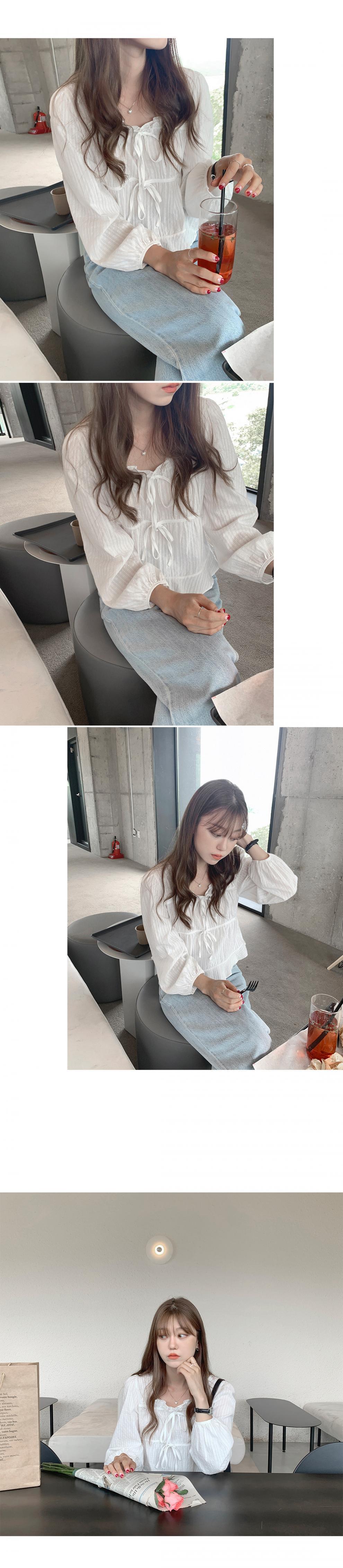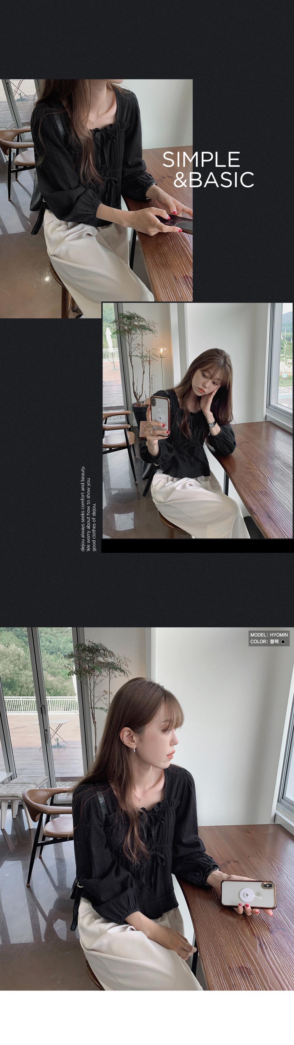 한국식 세련된 봄과 가을 뉴 에이지 감소 레트로 틈새 디자인 센스 심플 스퀘어 칼라 허리 슬리밍 레이스 업 셔츠