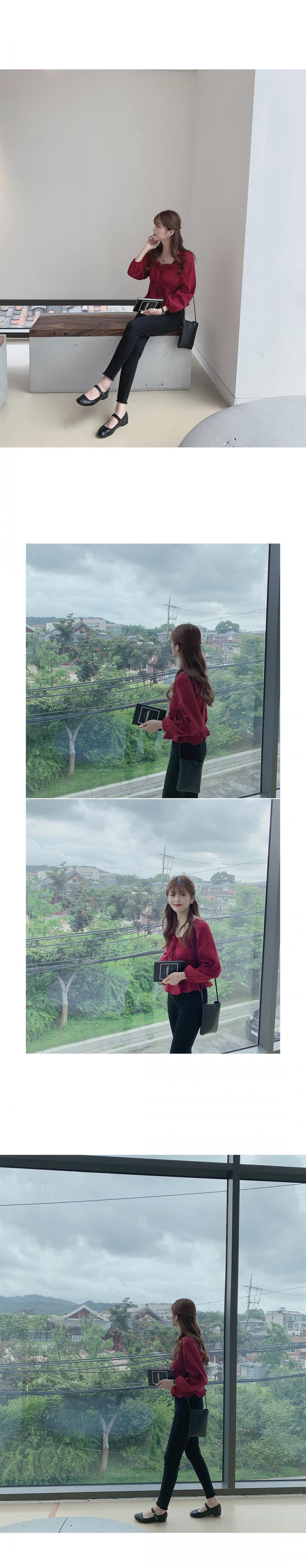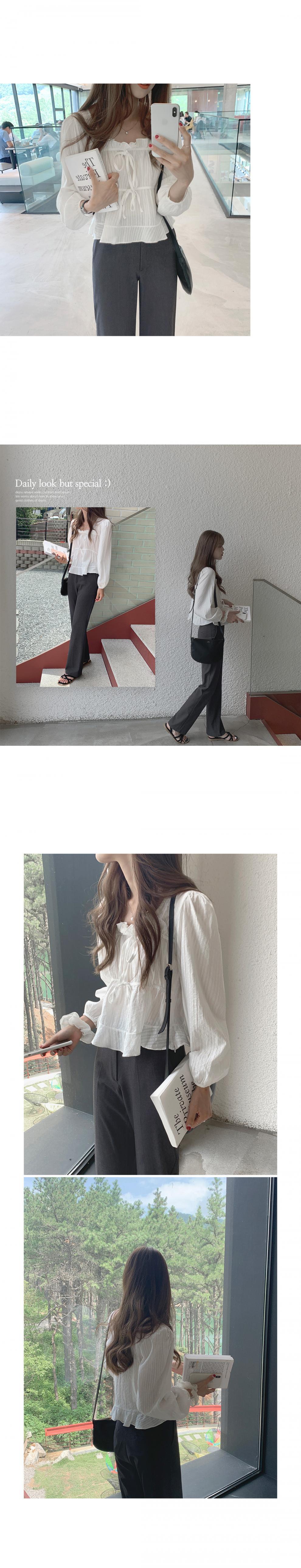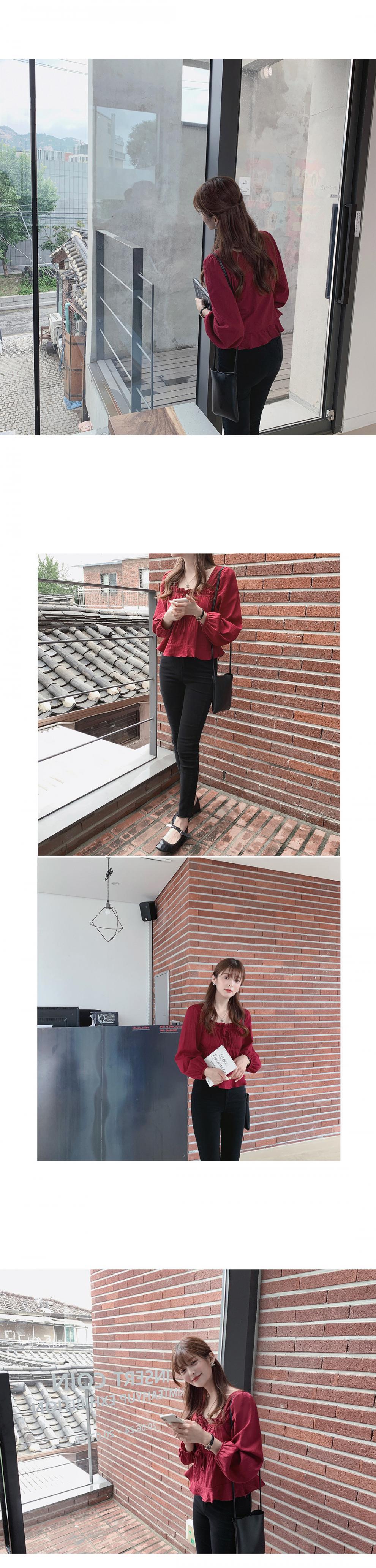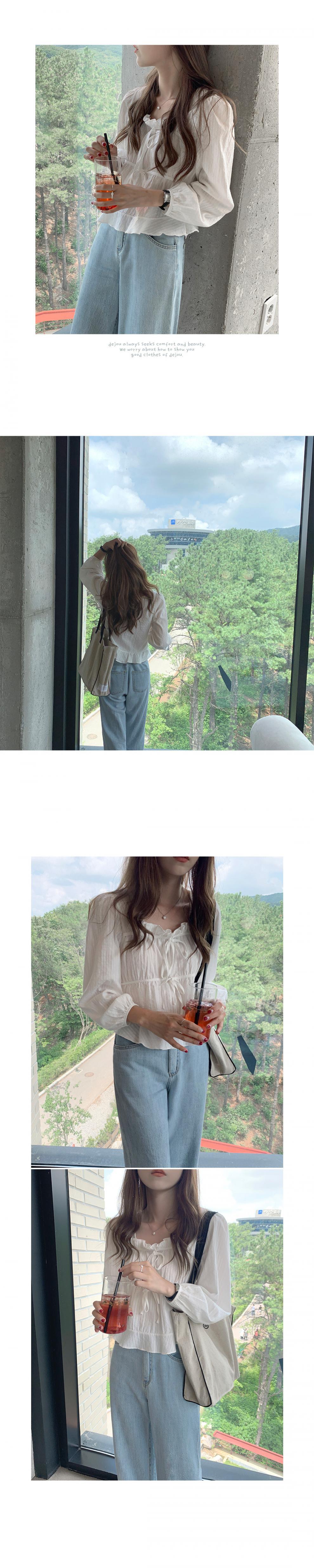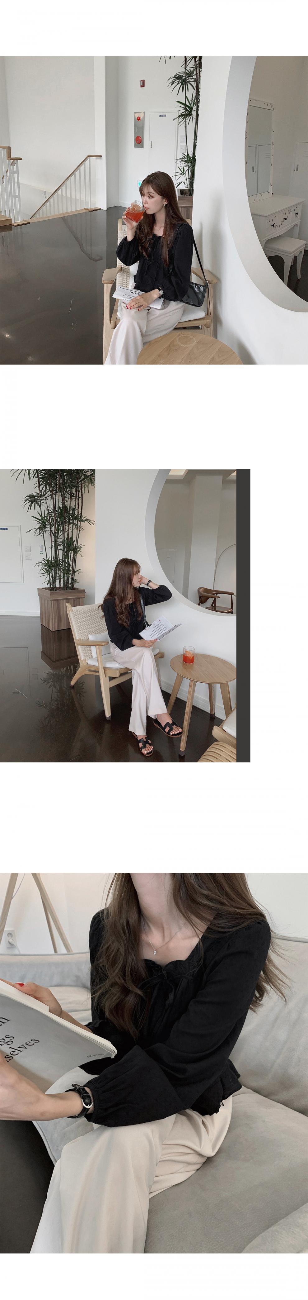 한국식 세련된 봄과 가을 뉴 에이지 감소 레트로 틈새 디자인 센스 심플 스퀘어 칼라 허리 슬리밍 레이스 업 셔츠