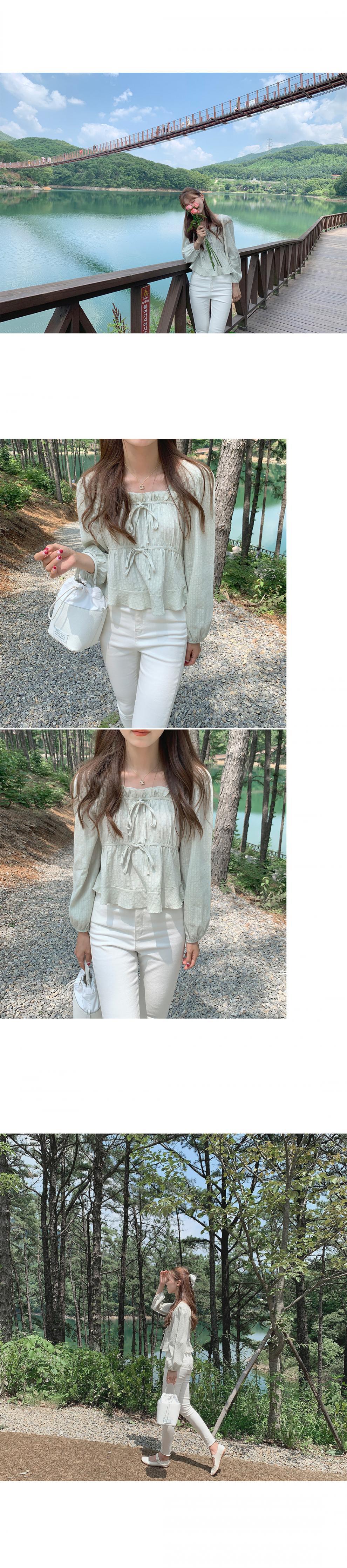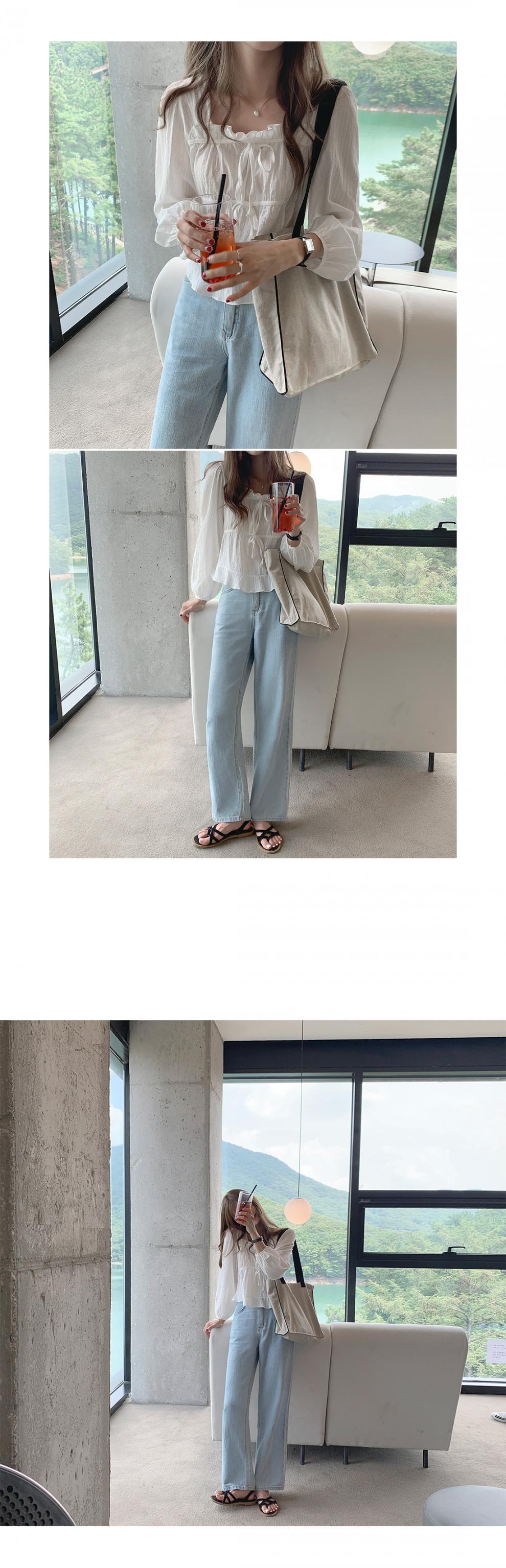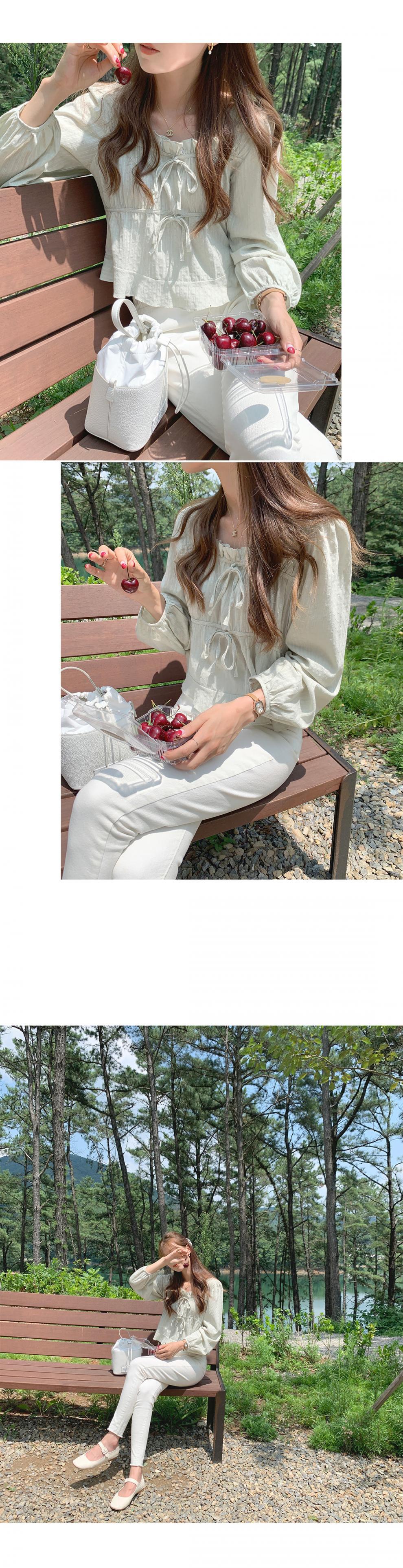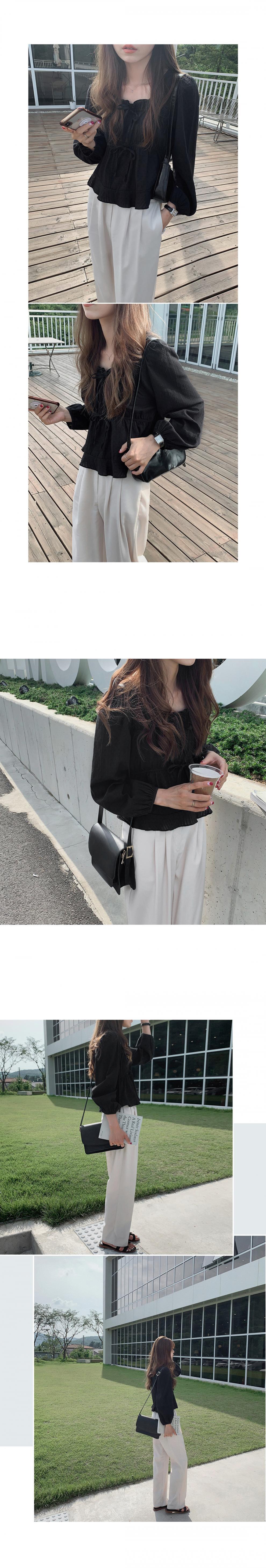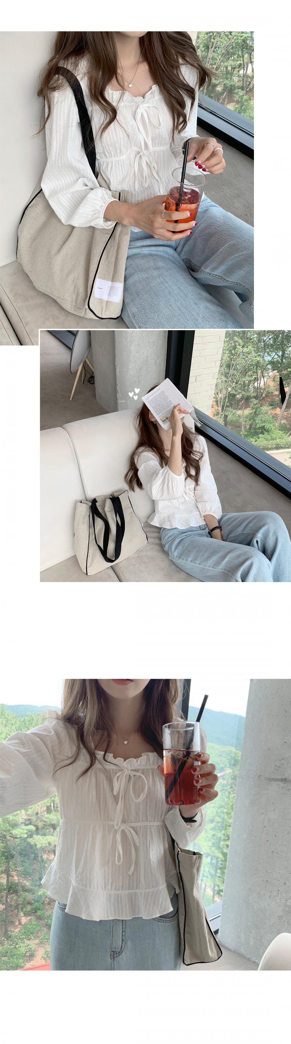 한국식 세련된 봄과 가을 뉴 에이지 감소 레트로 틈새 디자인 센스 심플 스퀘어 칼라 허리 슬리밍 레이스 업 셔츠