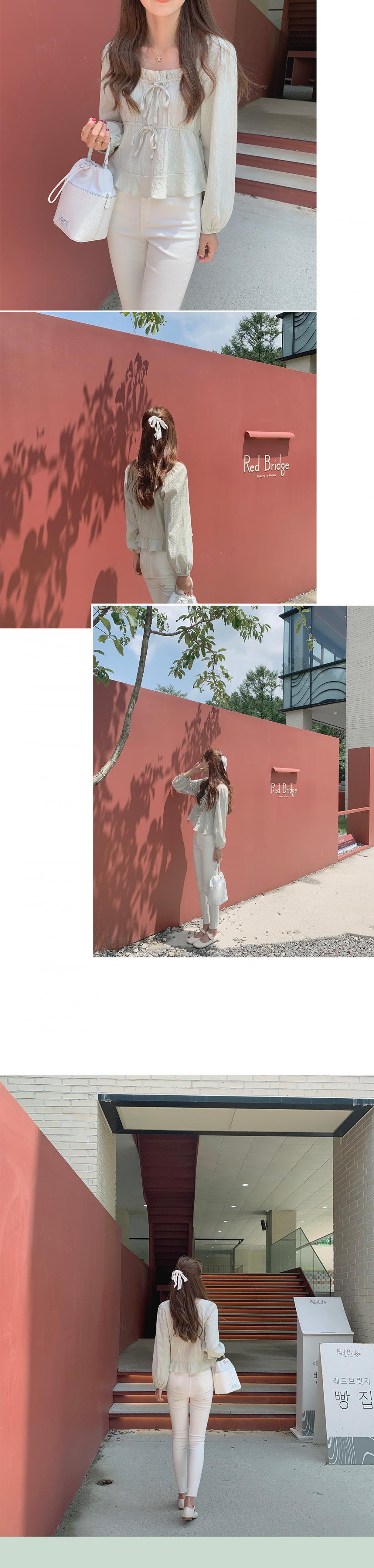 한국식 세련된 봄과 가을 뉴 에이지 감소 레트로 틈새 디자인 센스 심플 스퀘어 칼라 허리 슬리밍 레이스 업 셔츠스토어 가기