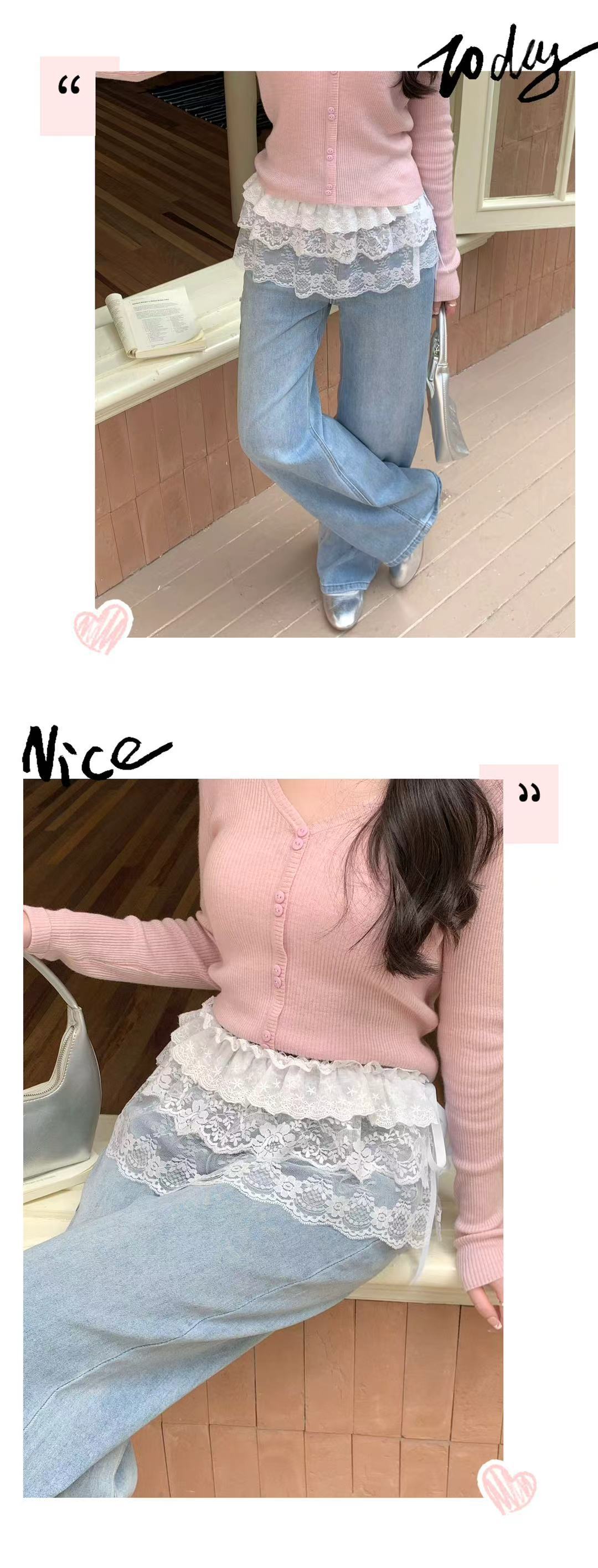 한국식 2025 년 여름 레이스 패트 커튼 레이스 힙 내베이스 스커트 땀이 쌓인 올매치 레이스 패트 커튼 앞치마스토어 가기
