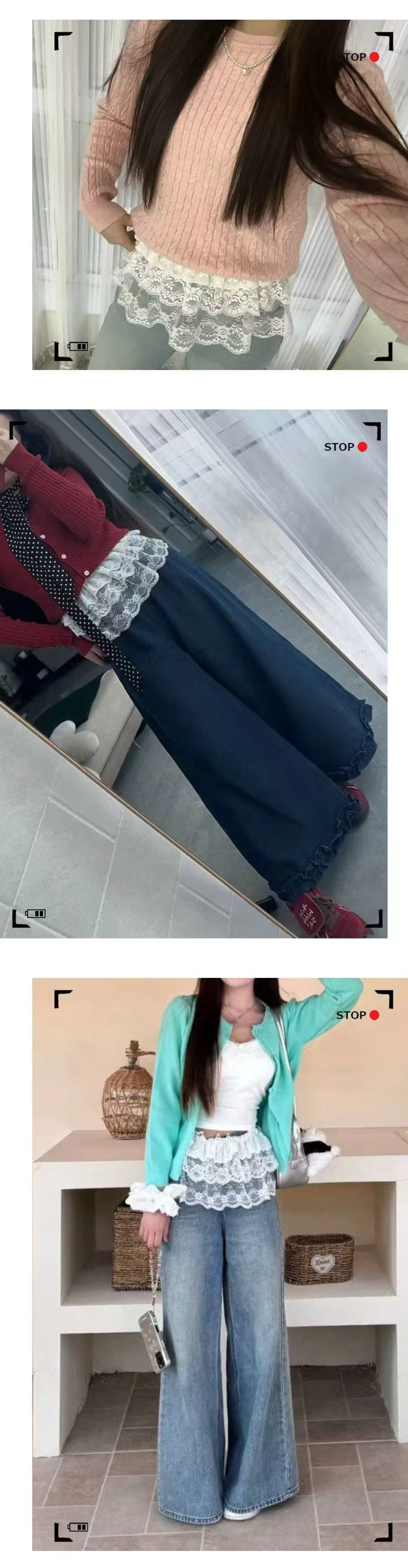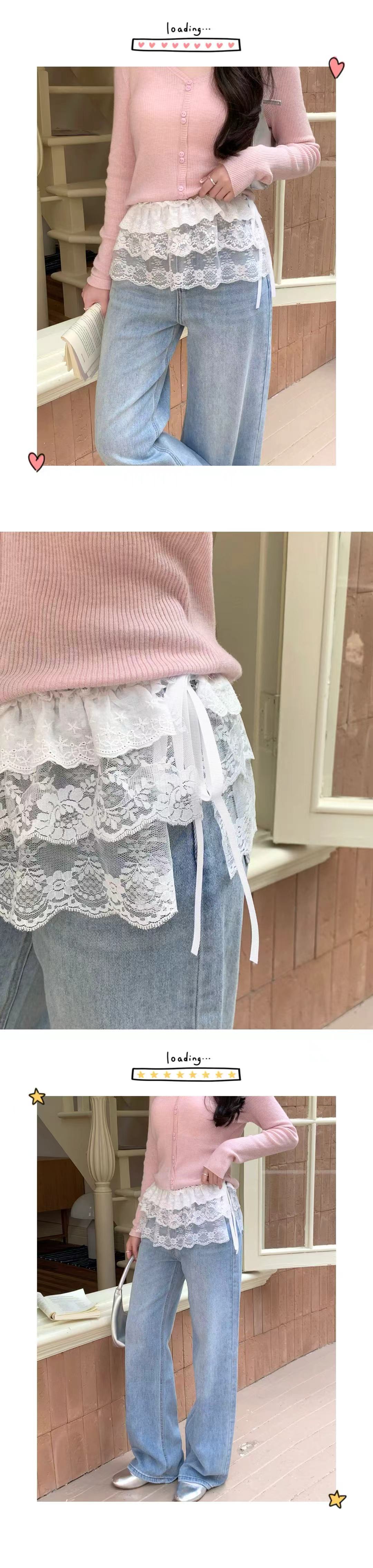 한국식 2025 년 여름 레이스 패트 커튼 레이스 힙 내베이스 스커트 땀이 쌓인 올매치 레이스 패트 커튼 앞치마