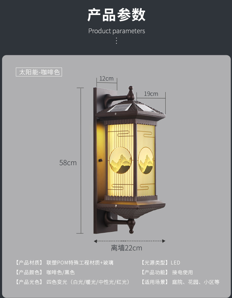• (Liansu POM) [일조금산벽등] 태양광-브라운-80cm