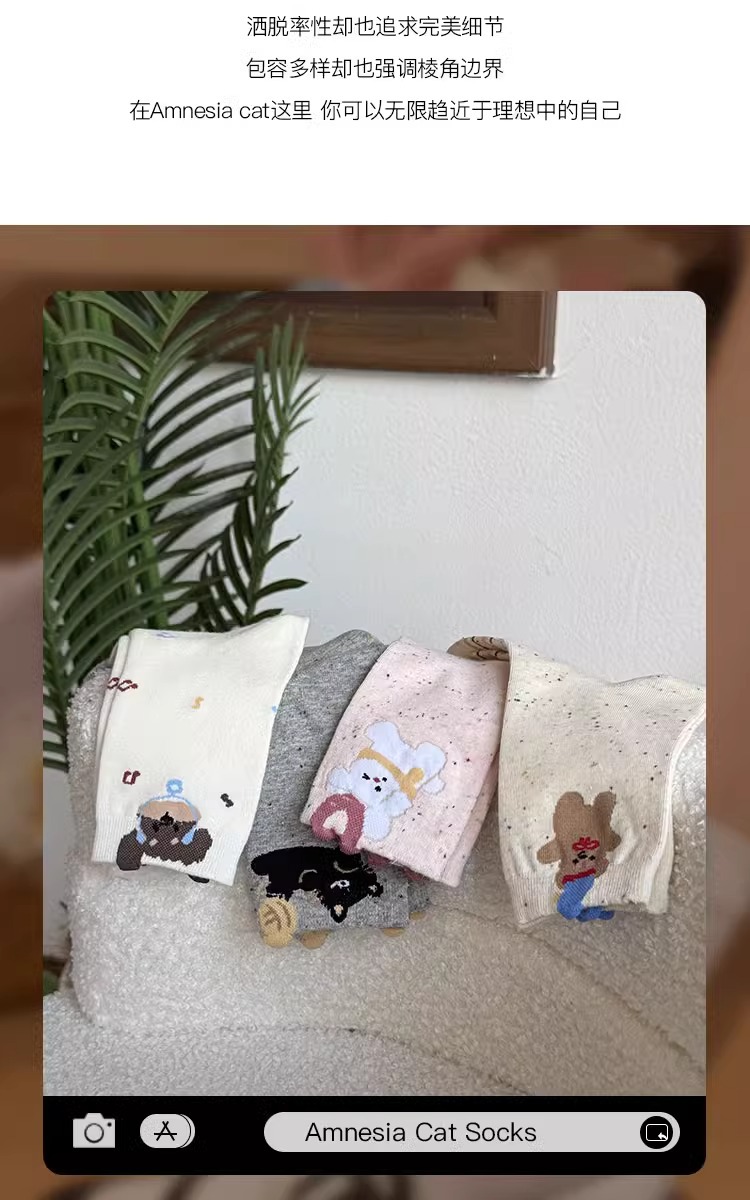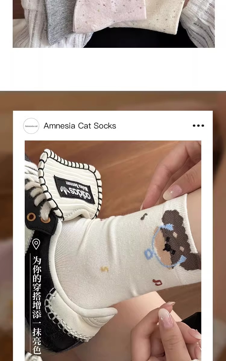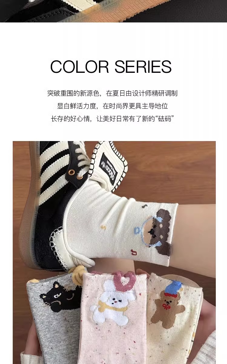 강아지 양말 여성용 Ins 트렌디 한 순수 코튼 땀 흡수 중간 길이 양말 여름 얇은 귀여운 만화 한국 스타일 스타킹 여름스토어 가기