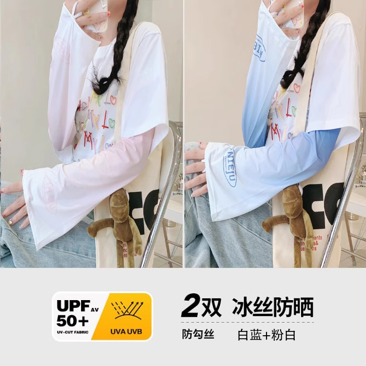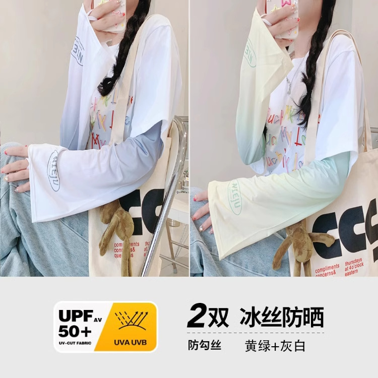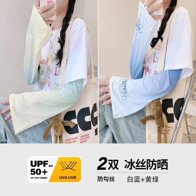 여름 그라디언트 컬러 야외 소매 느슨한 플러스 사이즈 태양 보호 손 소매 UV 보호 아이스 실크 통기성 아이스 슬리브 팔 보호 트렌디스토어 가기