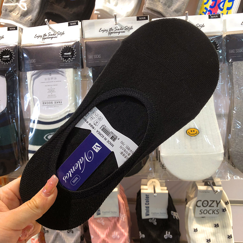 한국 수입 남성 보트 양말 단색 간단한 스타일 눈에 띄지 않는 양말 흑백 기본 땀 흡수성 얇은 면 양말스토어 가기