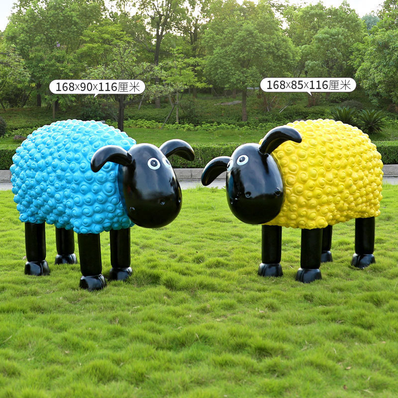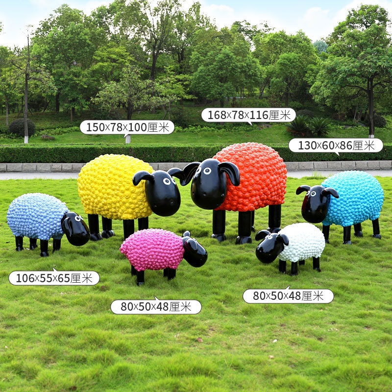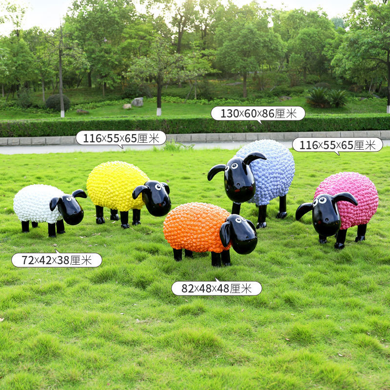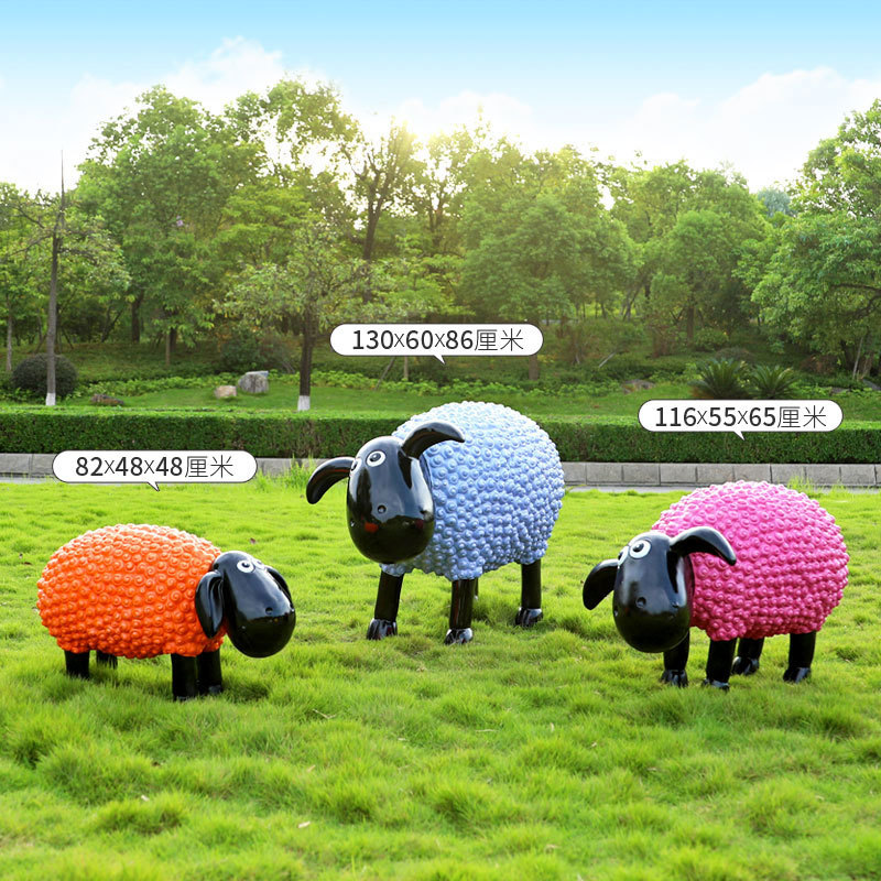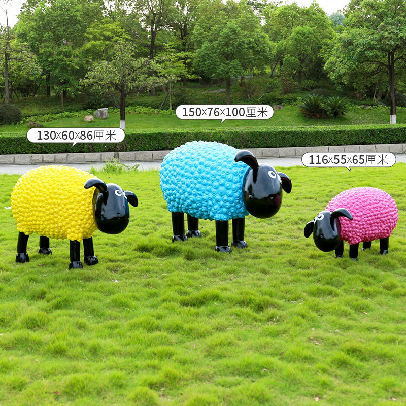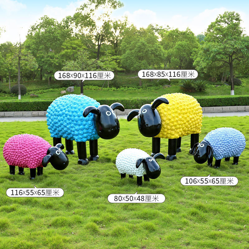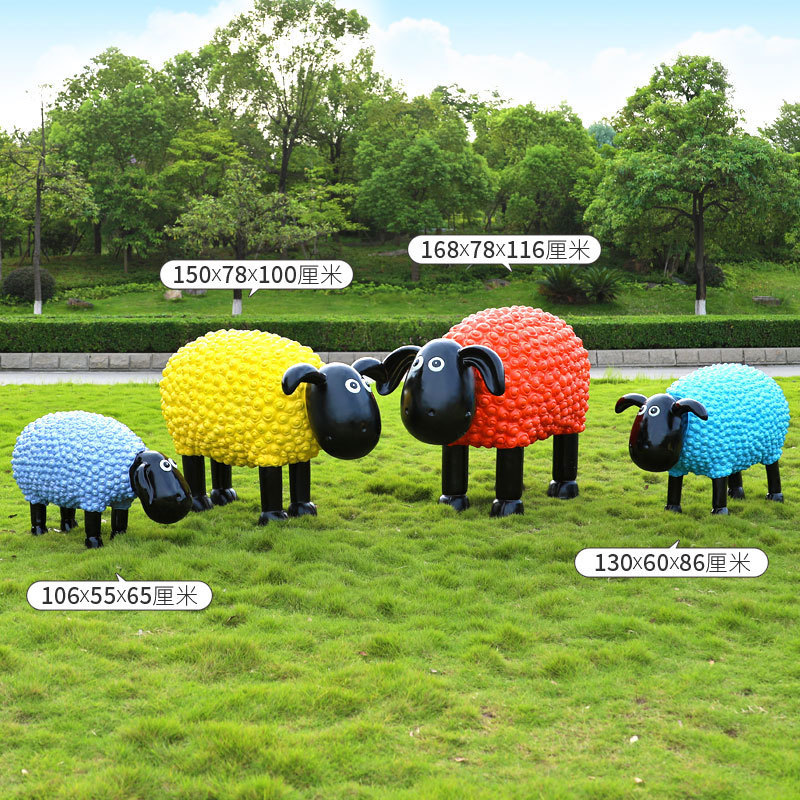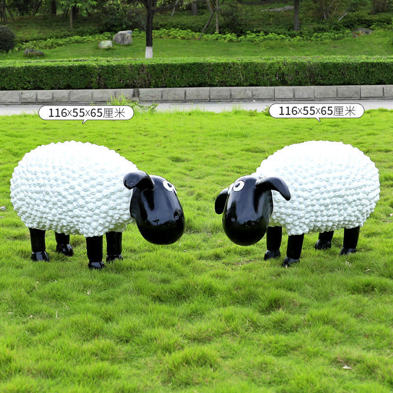 야외 만화 곱슬 양 유리 섬유 강화 플라스틱 조각 정원 풍경 장식 공원 경치 좋은 지역 잔디 장식스토어 가기