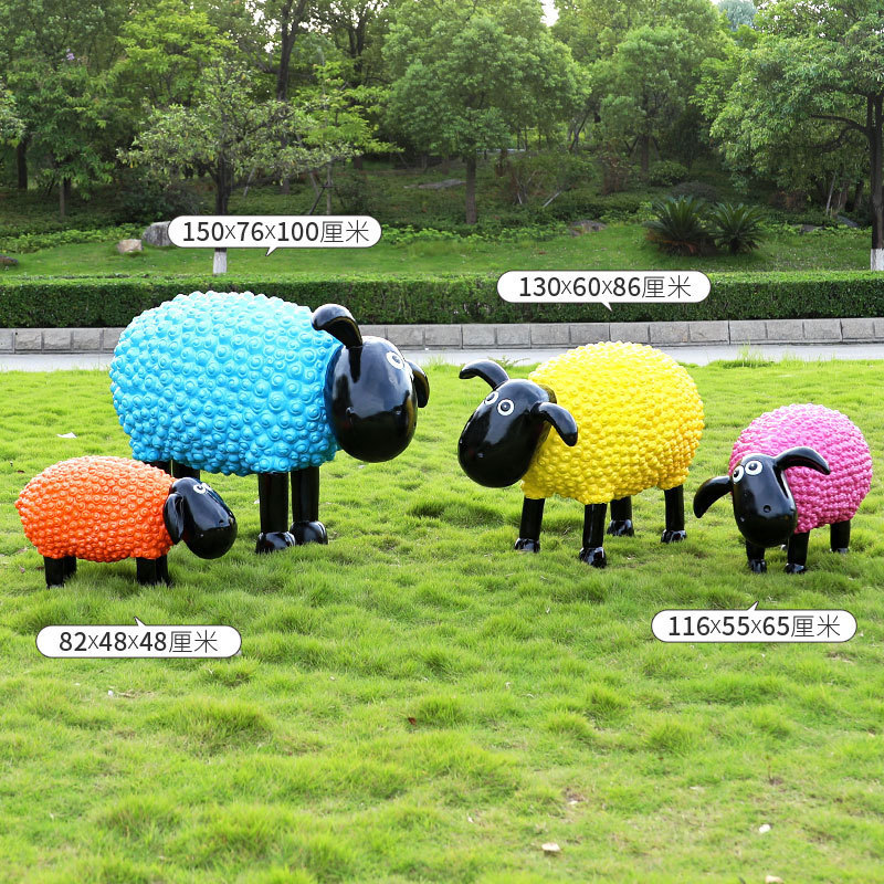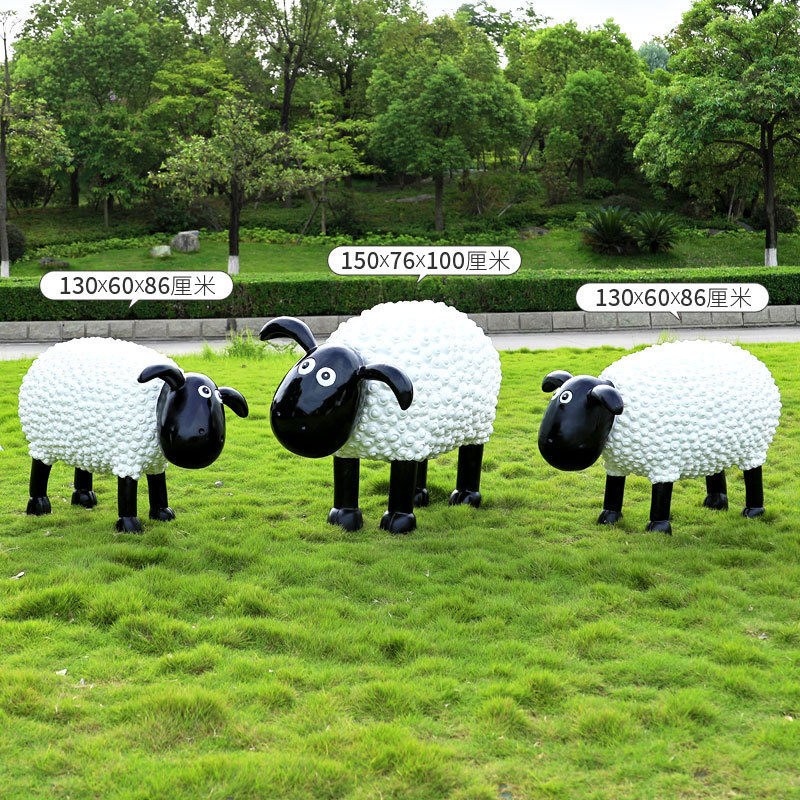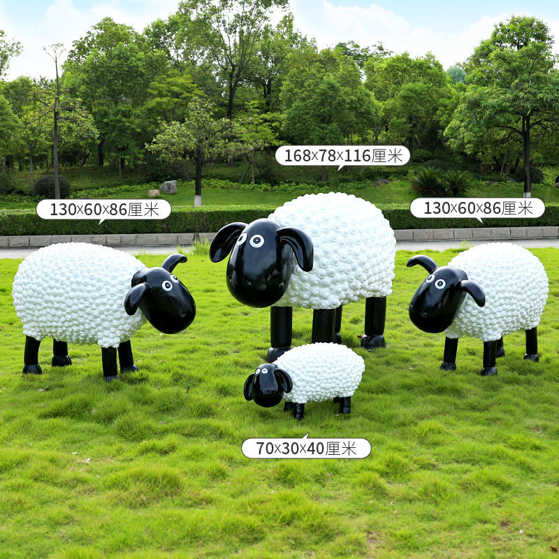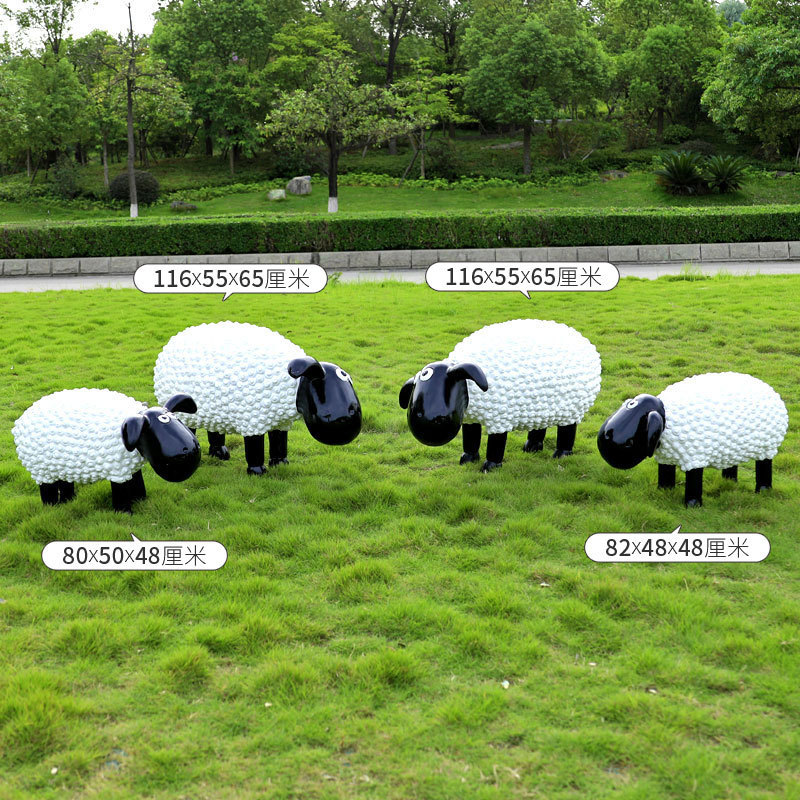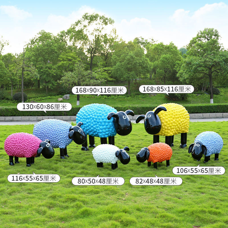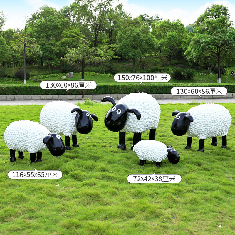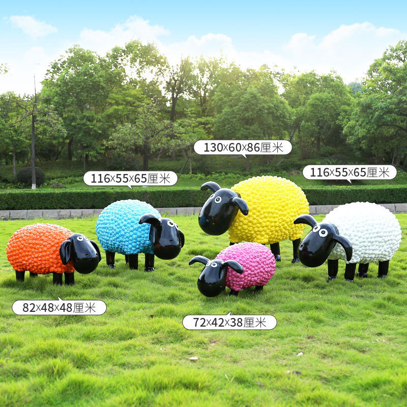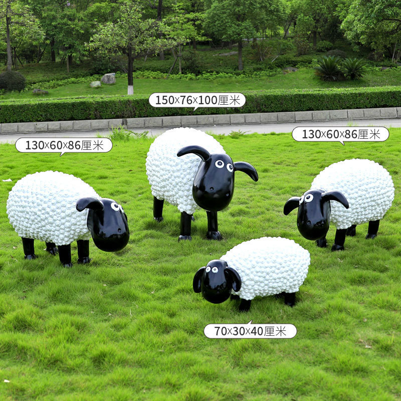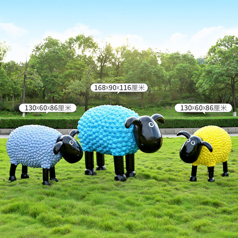 야외 만화 곱슬 양 유리 섬유 강화 플라스틱 조각 정원 풍경 장식 공원 경치 좋은 지역 잔디 장식스토어 가기