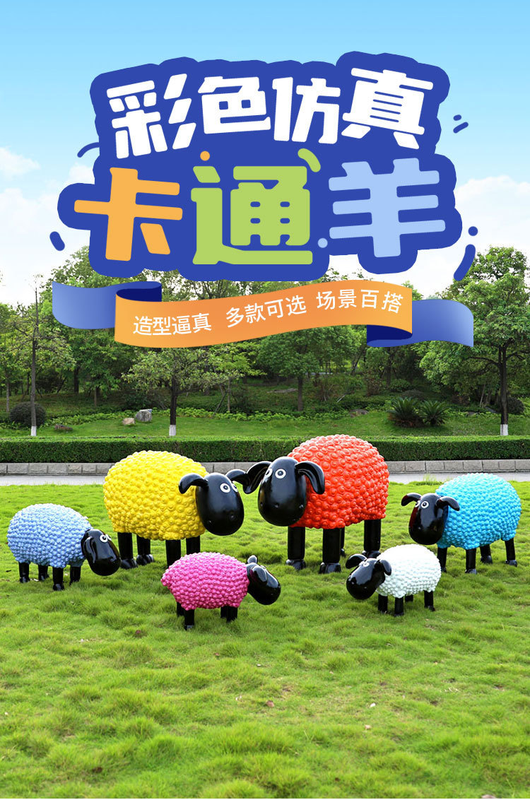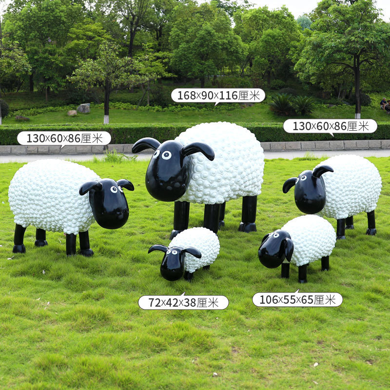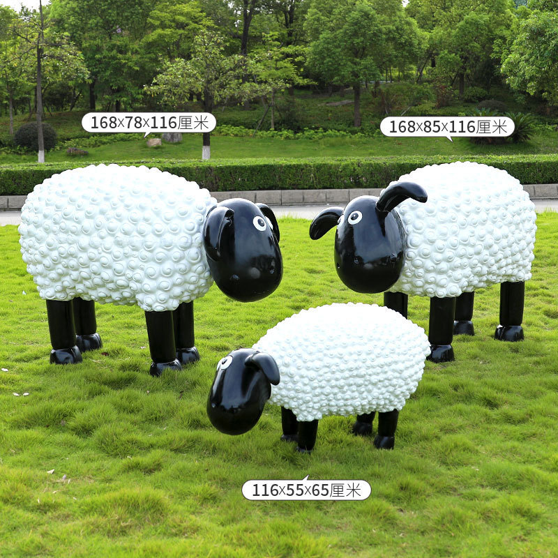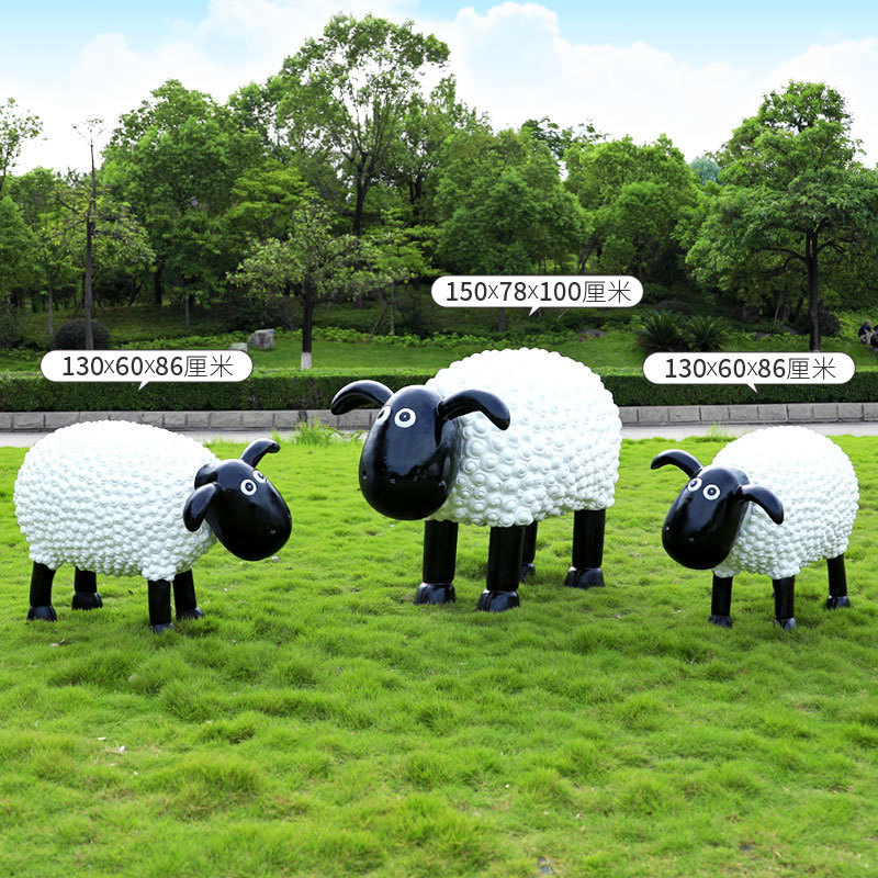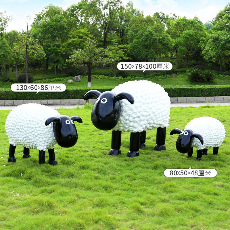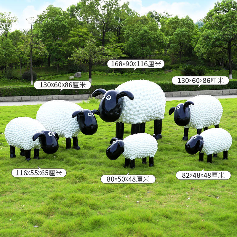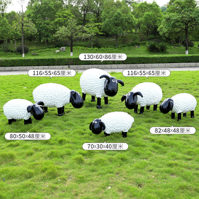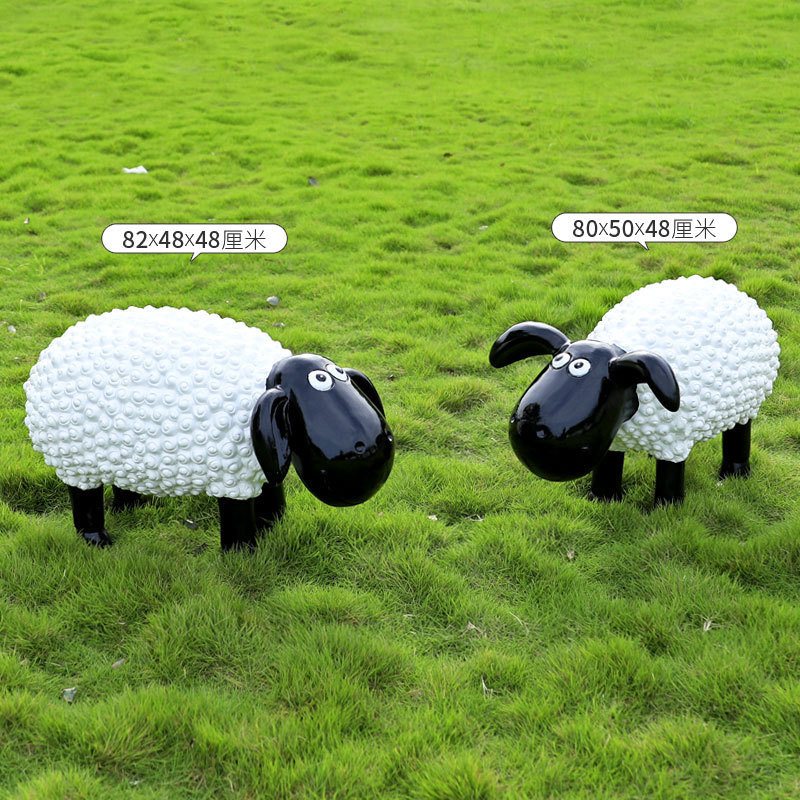야외 만화 곱슬 양 유리 섬유 강화 플라스틱 조각 정원 풍경 장식 공원 경치 좋은 지역 잔디 장식스토어 가기