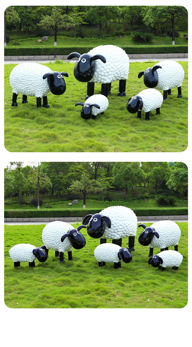 야외 만화 곱슬 양 유리 섬유 강화 플라스틱 조각 정원 풍경 장식 공원 경치 좋은 지역 잔디 장식