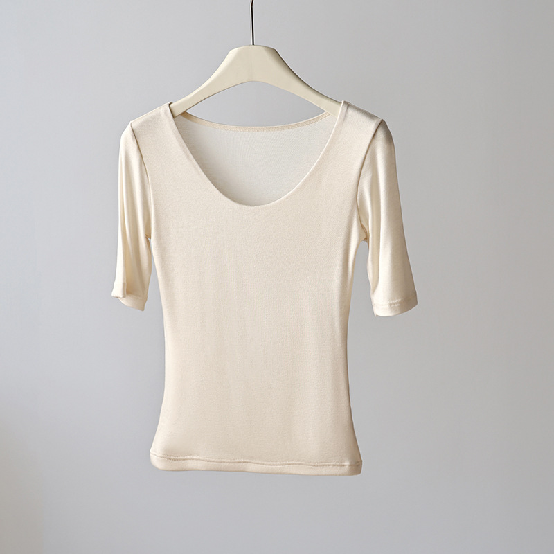 봄과 여름 새로운 여성 실크 반팔 티셔츠 솔리드 컬러 캐주얼 베이스 셔츠 슬림핏 슬리밍 아우터웨어 여성용 얇은 탑