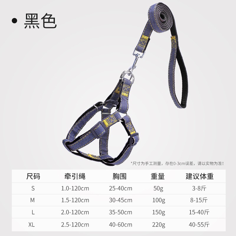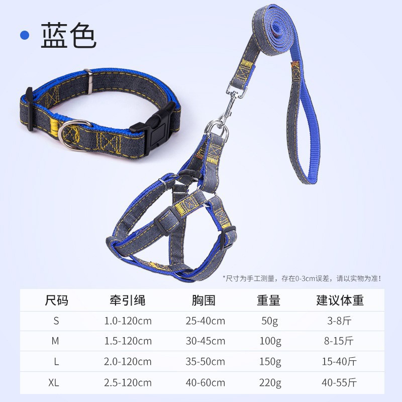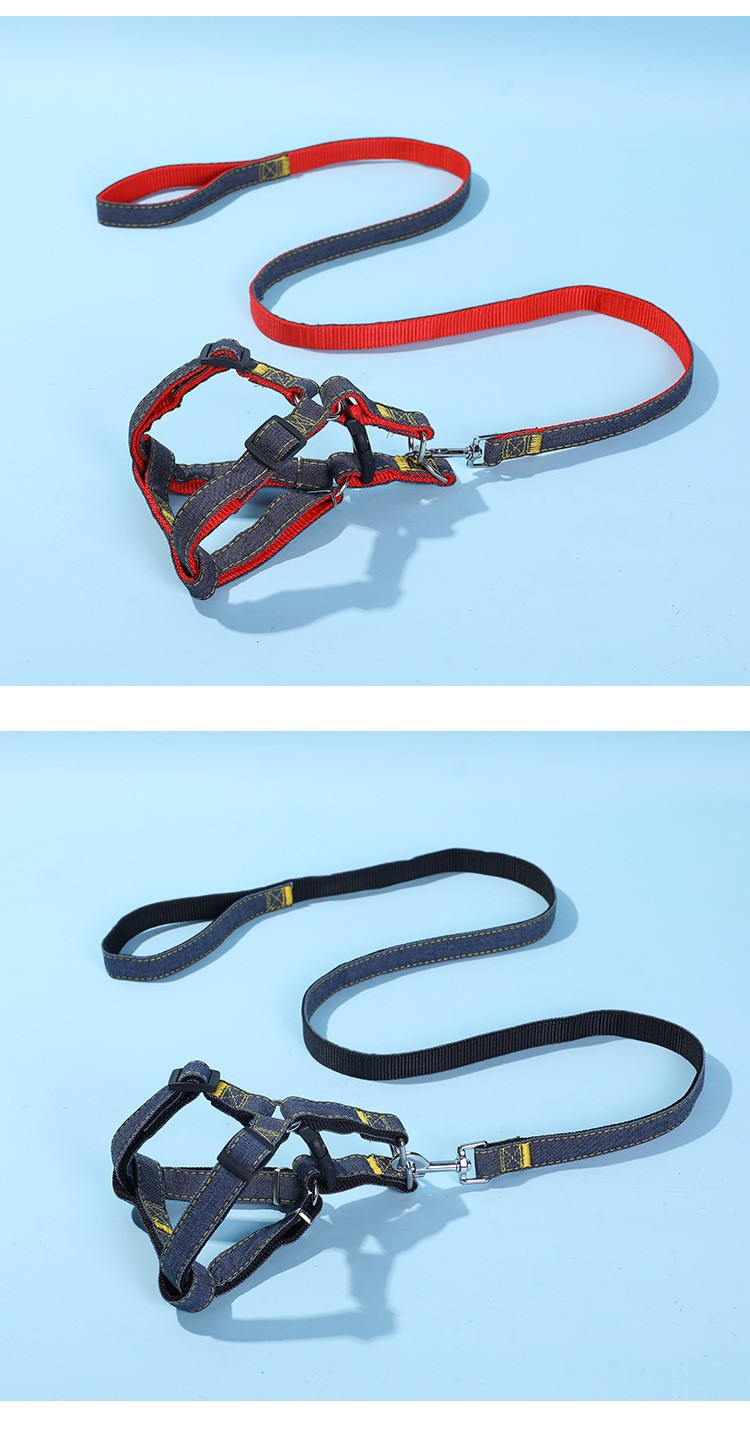 소스 데님 애완 동물 가슴 다시 개 가죽 끈 폭발 방지 고양이 걷는 가죽 끈 애완 동물 개 용품 도매 공장스토어 가기