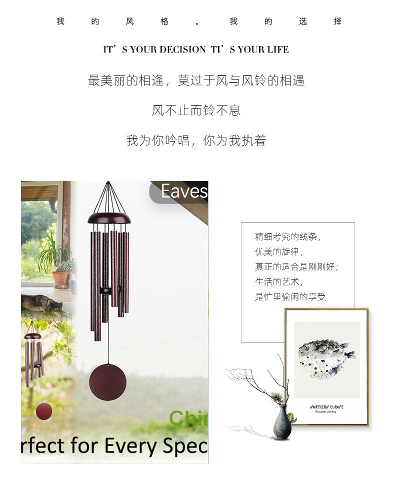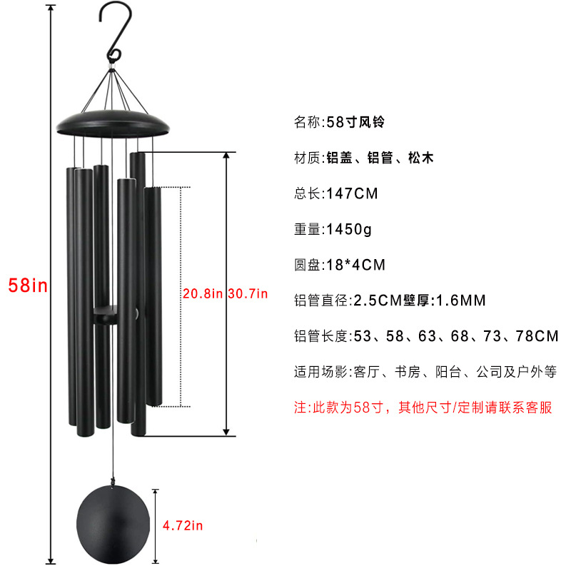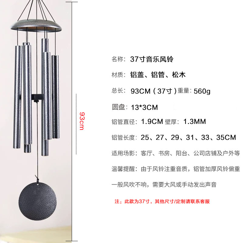 유럽과 미국 국경 금속 32 인치 음악 바람 차임 창조적 인 홈 펜던트 음악 장식 검은 기념 바람 차임