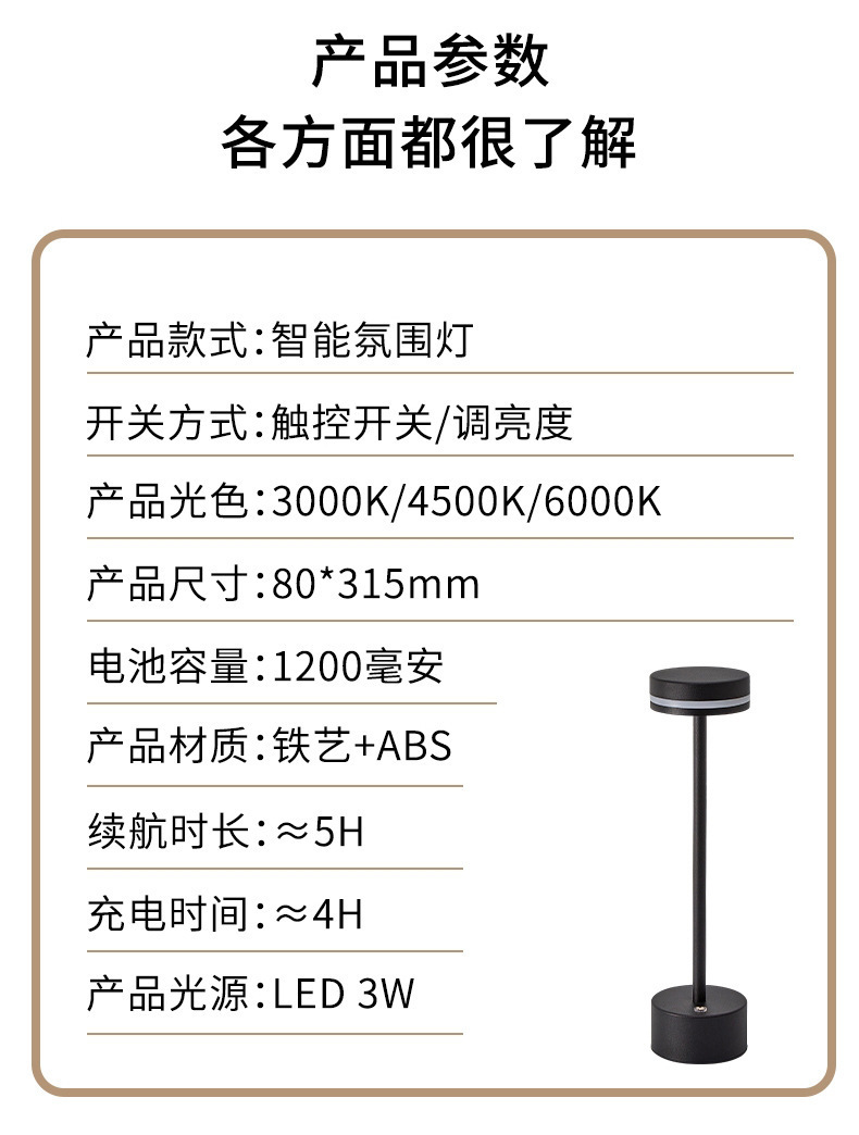 충전 높은 발 I 모양의 책상 램프 터치 금속 장식 바 카페 레스토랑 데스크탑 분위기 램프 야간 조명 국경스토어 가기