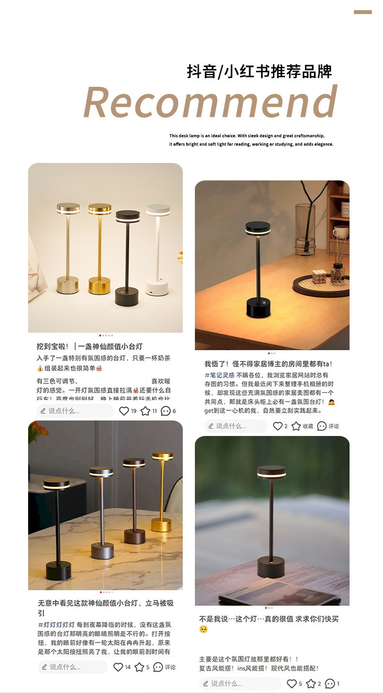충전 높은 발 I 모양의 책상 램프 터치 금속 장식 바 카페 레스토랑 데스크탑 분위기 램프 야간 조명 국경
