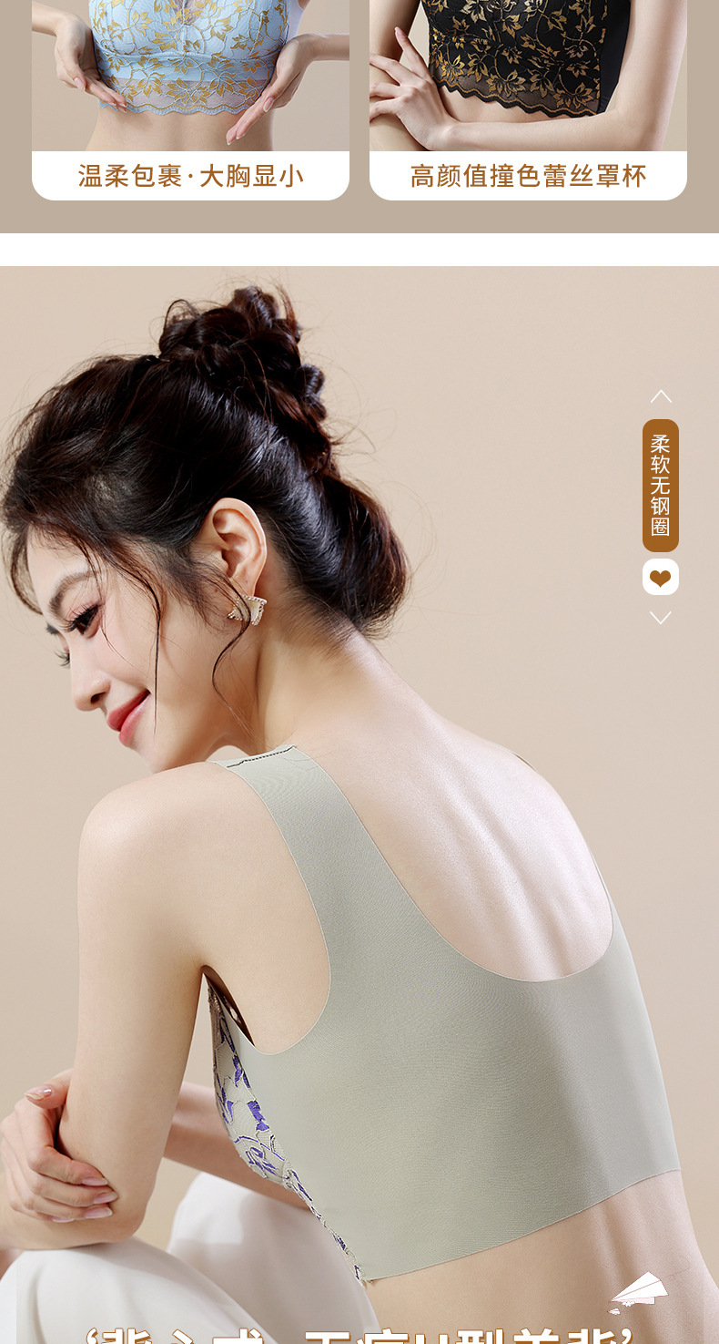 신제품 레이스 조절 가능하고 편안하며 와이어가 없는 여성용 섹시 푸시업 속옷, 사이드 컬렉션, 대형 브라스토어 가기