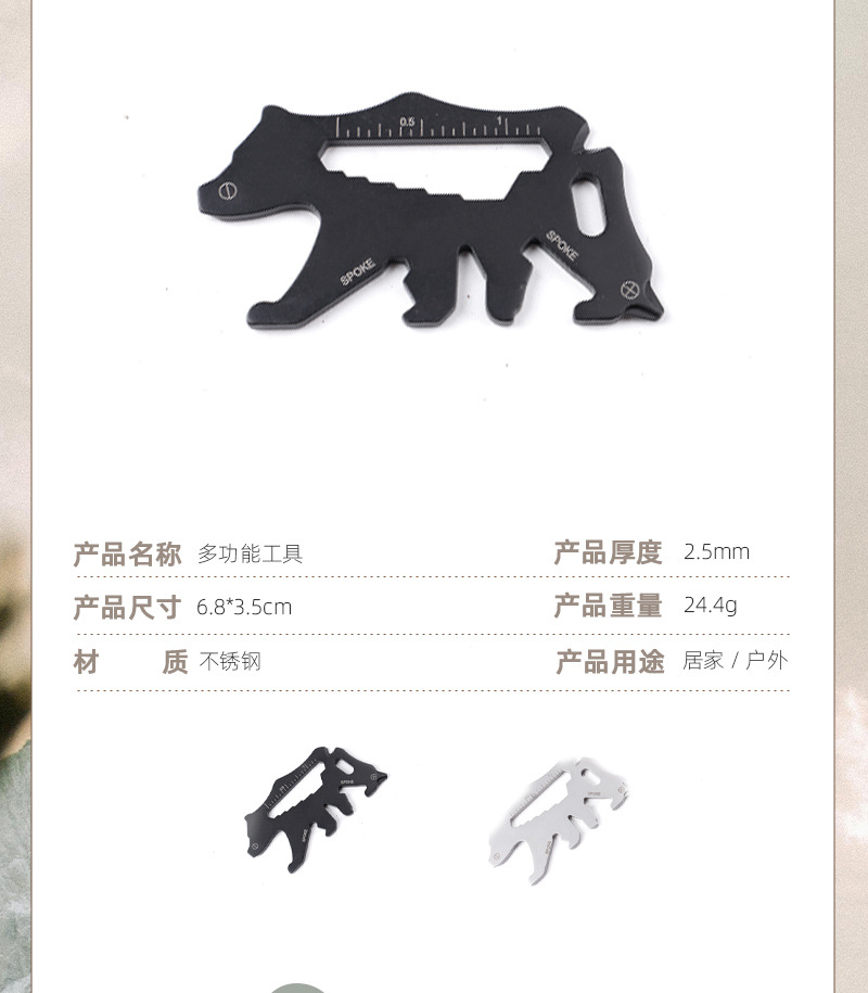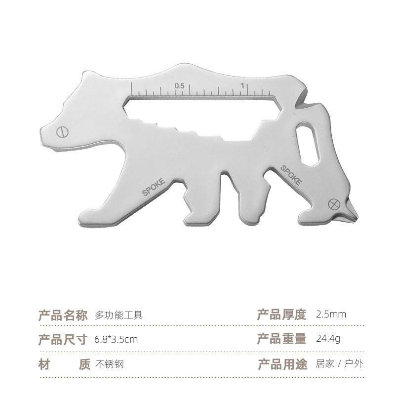다기능 도구 카드 미니 곰 키 체인 선물 휴대용 렌치 병 오프너 창조적 인 야외 도구