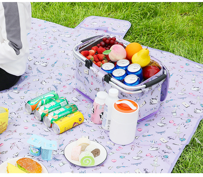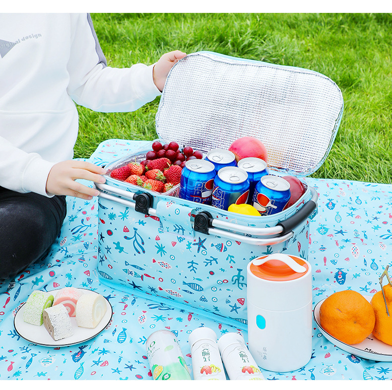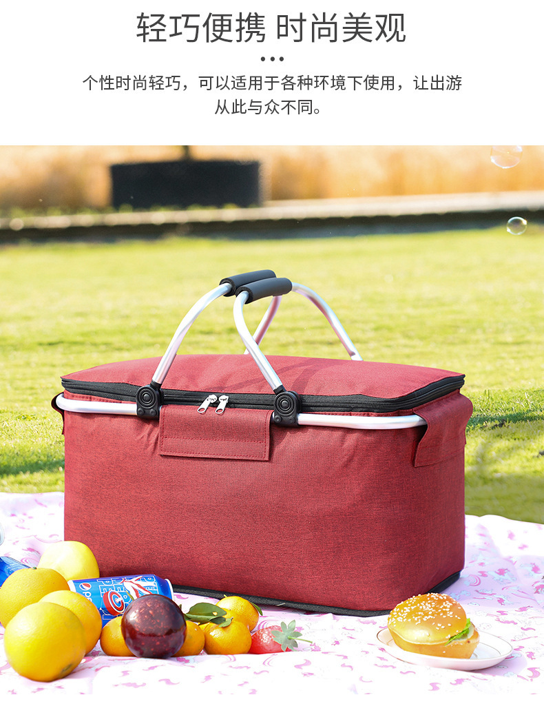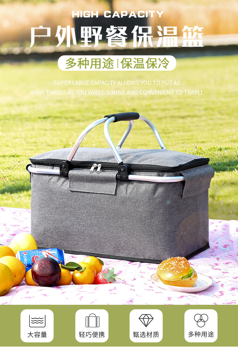 국경을 넘는 아마존 피크닉 바구니 야외 피크닉 과일 바구니 대용량 알루미늄 호일 휴대용 알루미늄 프레임 보온 바구니 피크닉 가방